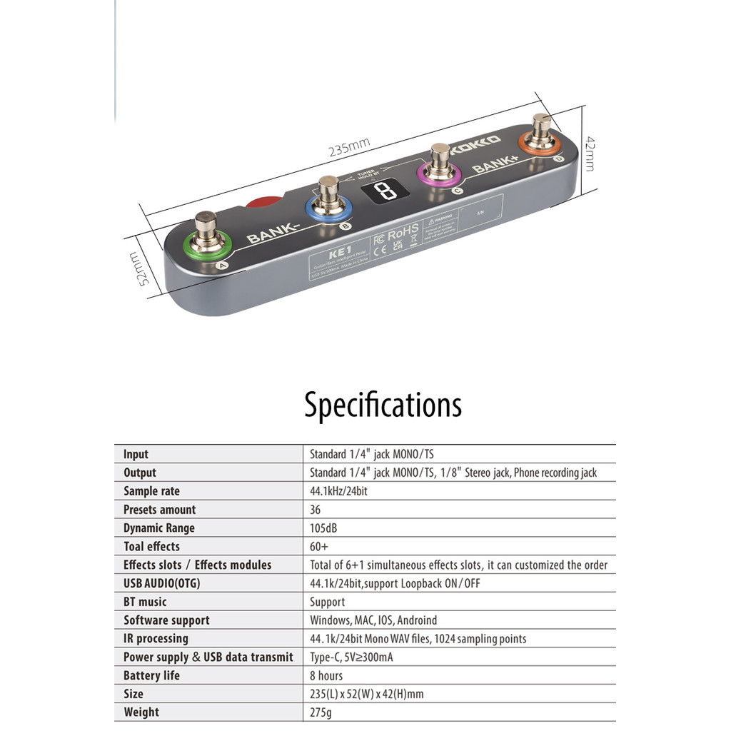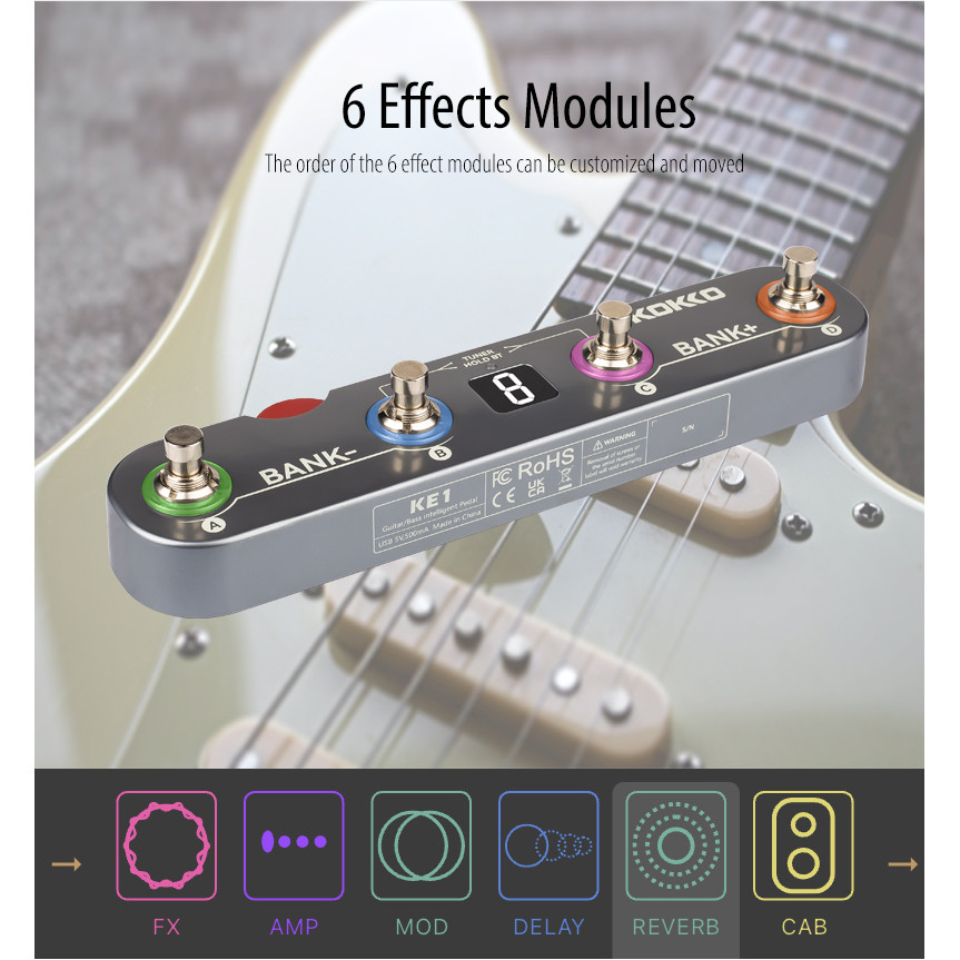 โปรเซสเซอร์เหยียบกีต้าร์อเนกประสงค์ KOKKO KE1-36 ที่ตั้งไว้ล่วงหน้า, โมดูลเอฟเฟกต์ 6 ตัว, อิสระไร้สาย KOKKO KE1, โปรเซสเซอร์เหยียบกีตาร์แบบพกพาแบบมัลติฟังก์ชั่น – 36 ที่ตั้งไว้ล่วงหน้า, โมดูลเอฟเฟกต์ 6 ตัว, อิสระไร้สาย