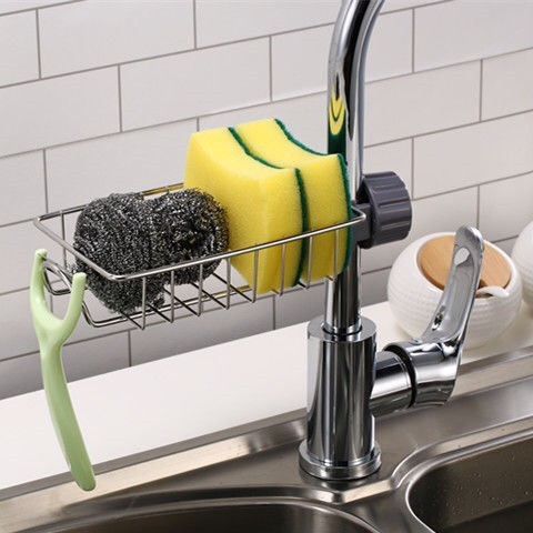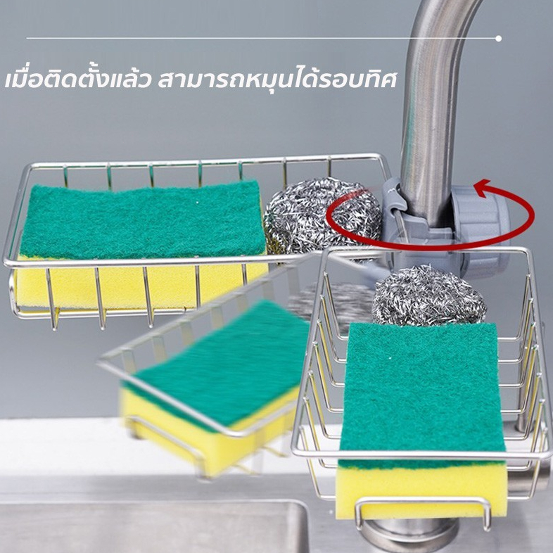 – ที่วางของสำหรับติดก๊อกน้ำ เพื่อจัดห้องครัวให้เป็นระเบียบ สามารถใช้เก็บฟองน้ำล้างจาน