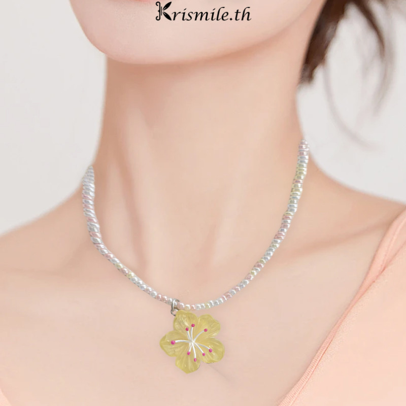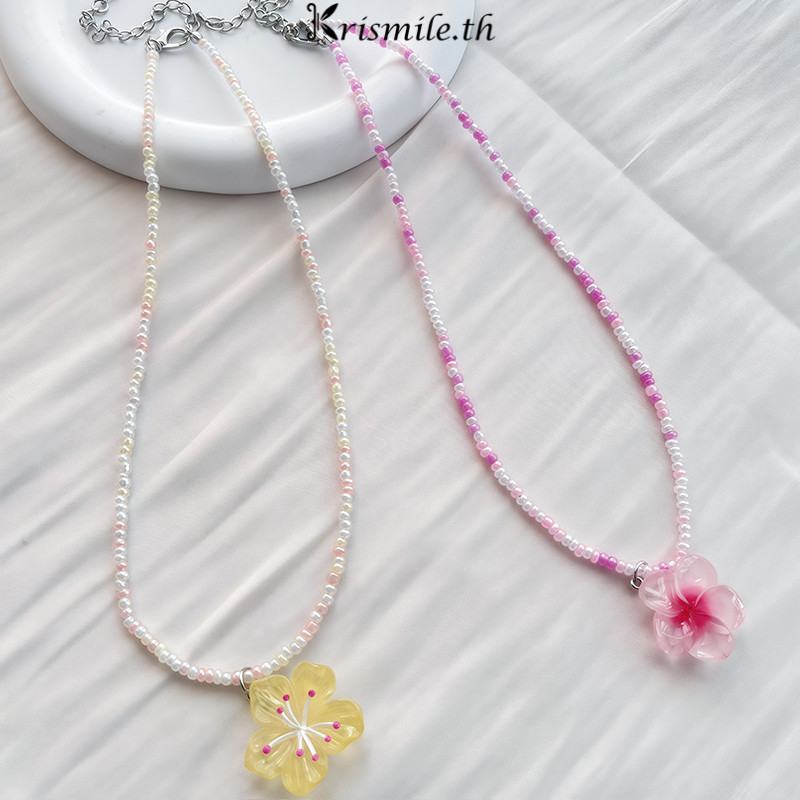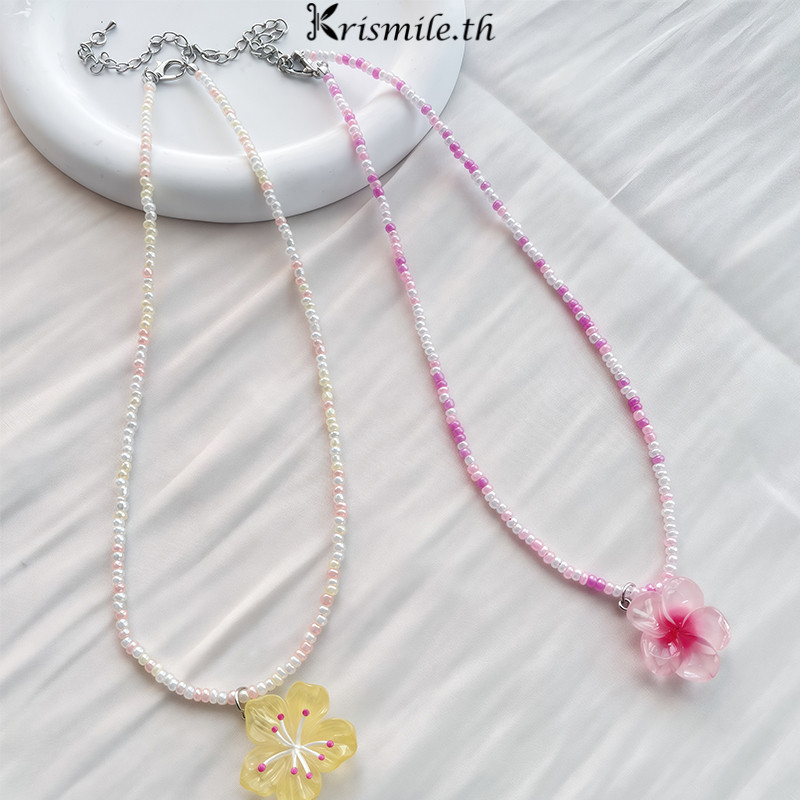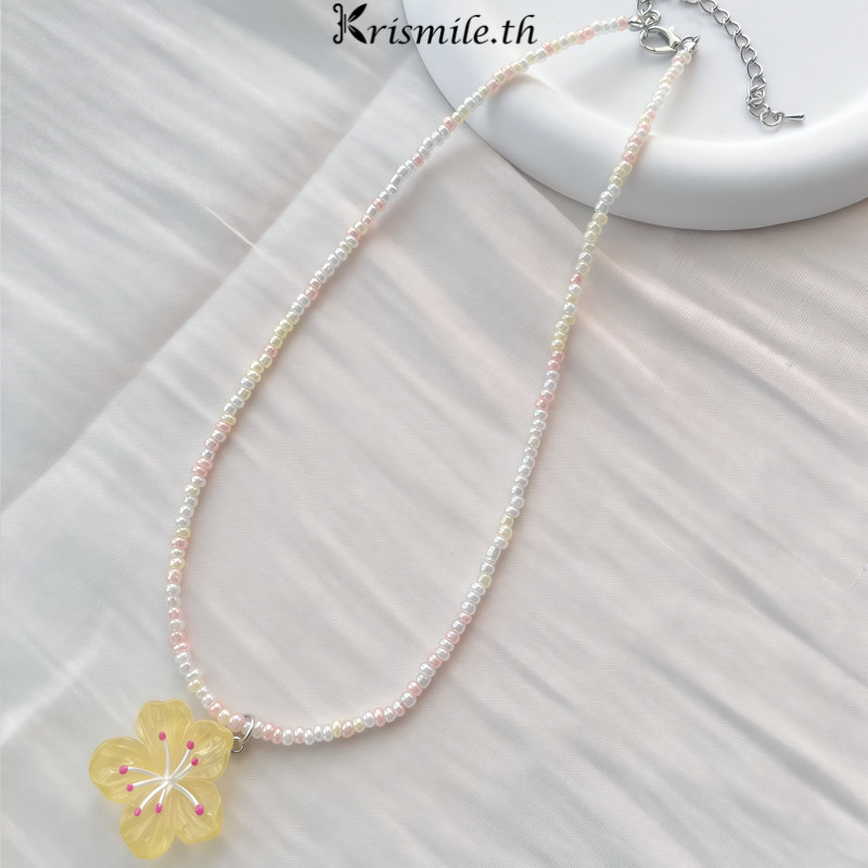 COD-ในไทย💖สร้อยคอประดับลูกปัด จี้ดอกไม้ สีแคนดี้การออกแบบ Dopamine นักเรียนสำหรับผู้หญิง เครื่องประดับแฟชั่น-Kri