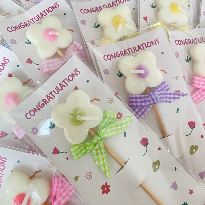 หยิบใส่ตะกร้า(พร้อมส่ง) เทียนหอมดอกไม้🌸✨ คละสี ของขวัญปัจฉิม/รับปริญญา (พร้อมซอง + กระดาษรอง)