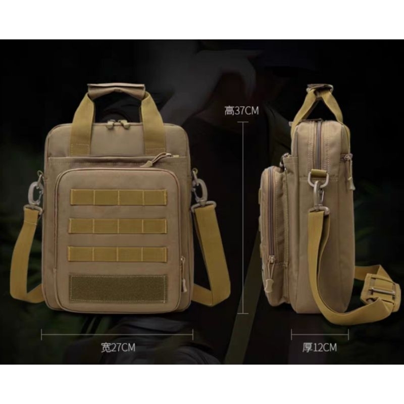 กระเป๋า Tactical เอนกประสงค์ ขนาดพกพากำลังดี ใส่แทปเลต/laptop ขนาดหน้าจอ 14″ ได้, ใส่กระดาษ A4 ได้ มีหลายช่อง