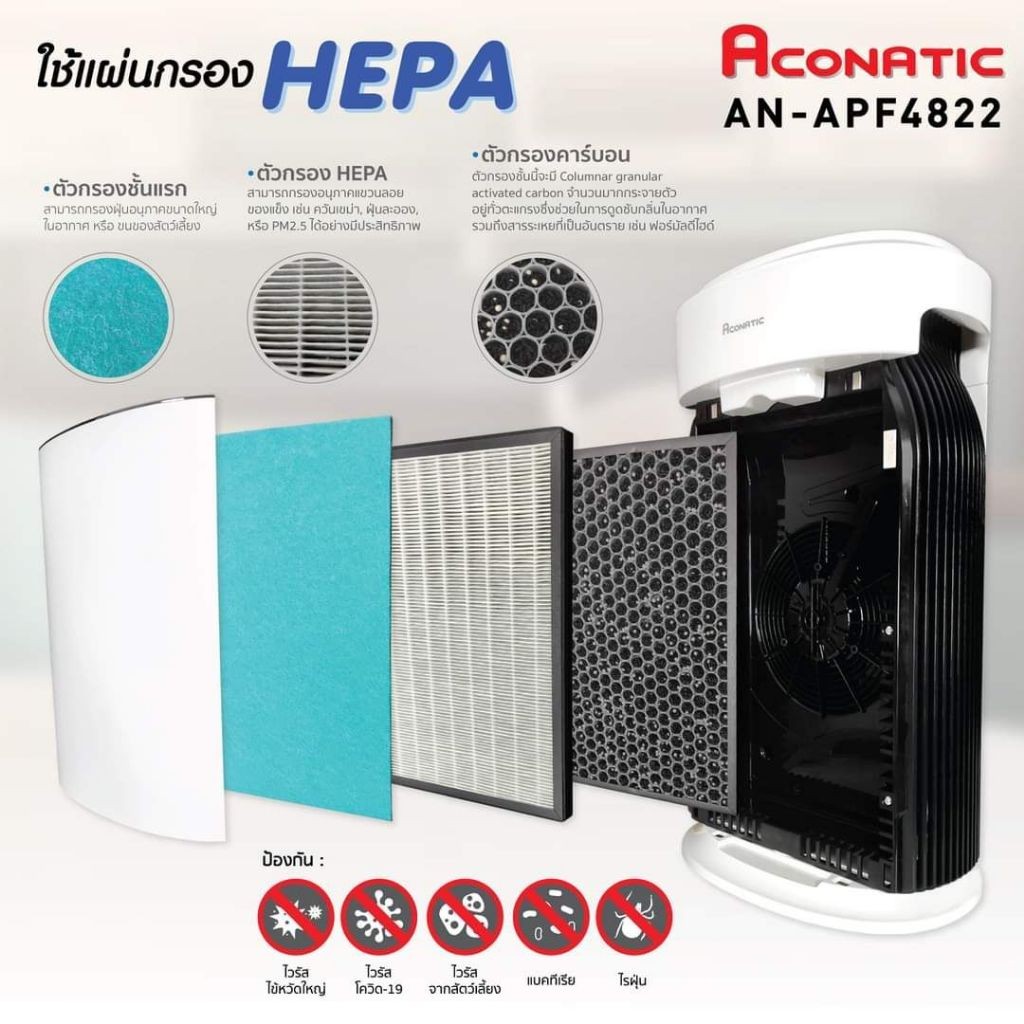 ของแท้จากศูนย์ ACONATIC แผ่นกรองอากาศ Filter HEPA กรองฝุ่น / CARBON กรองกลิ่น สำหรับเครื่องฟอกรุ่น AN-APF4822