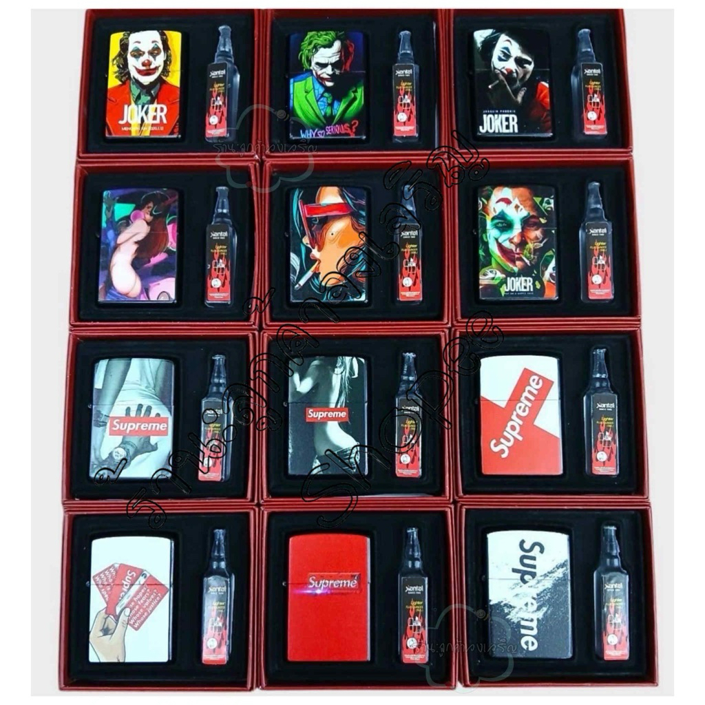 ไฟแช็คน้ำมัน สุ่มลาย Sup ใช้น้ำมันรอนสัน เป็นเชื้อเพลิง