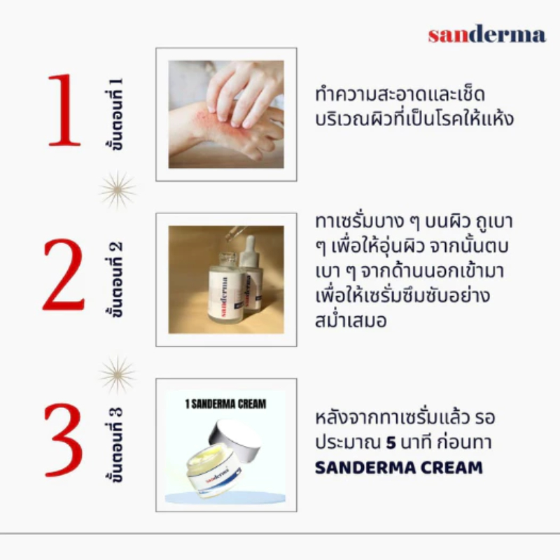 COMBO บำรุงผิว SANDERMA CREAM และ SERUM SANDERMA ลดอาการคัน ให้ความชุ่มชื้นอย่างมีประสิทธิภาพ