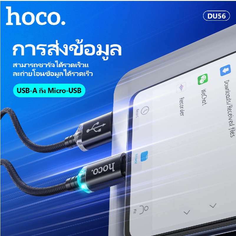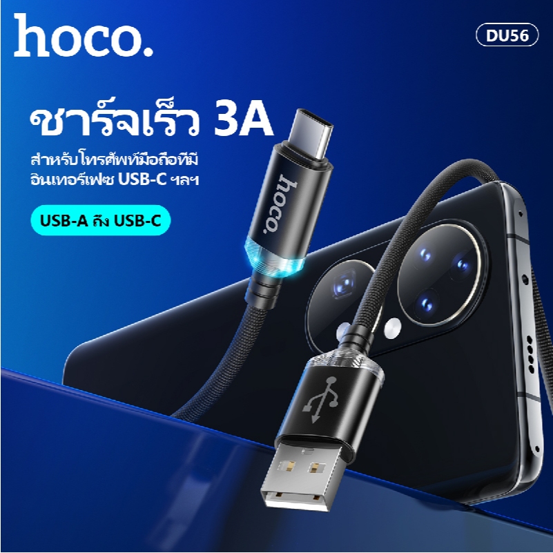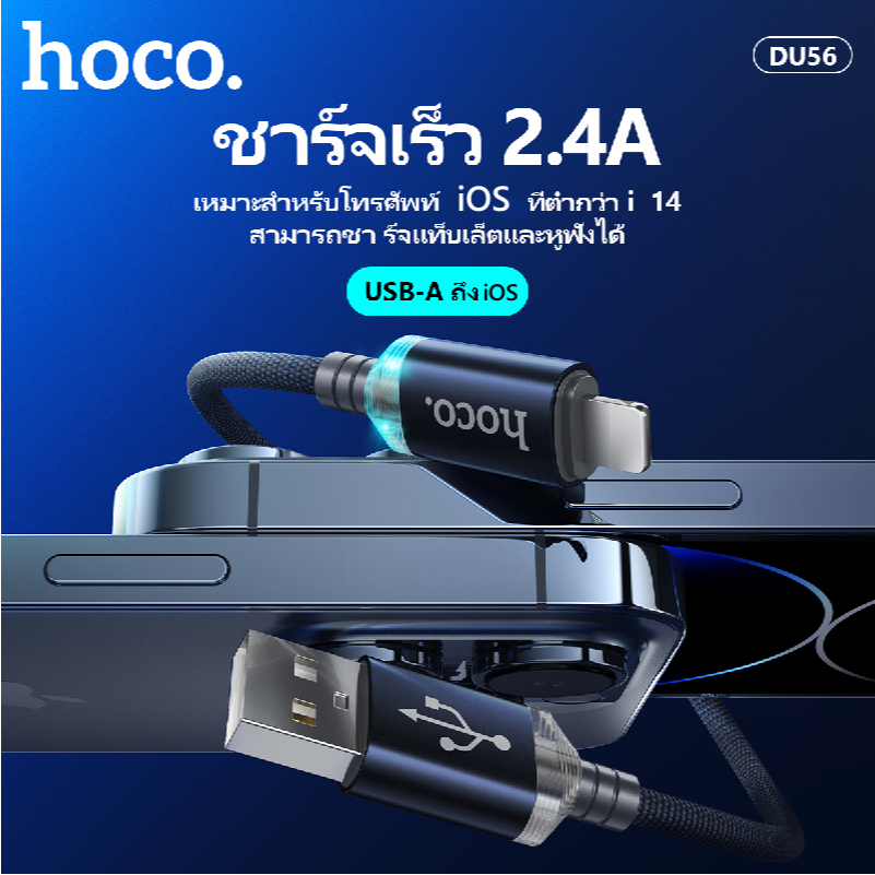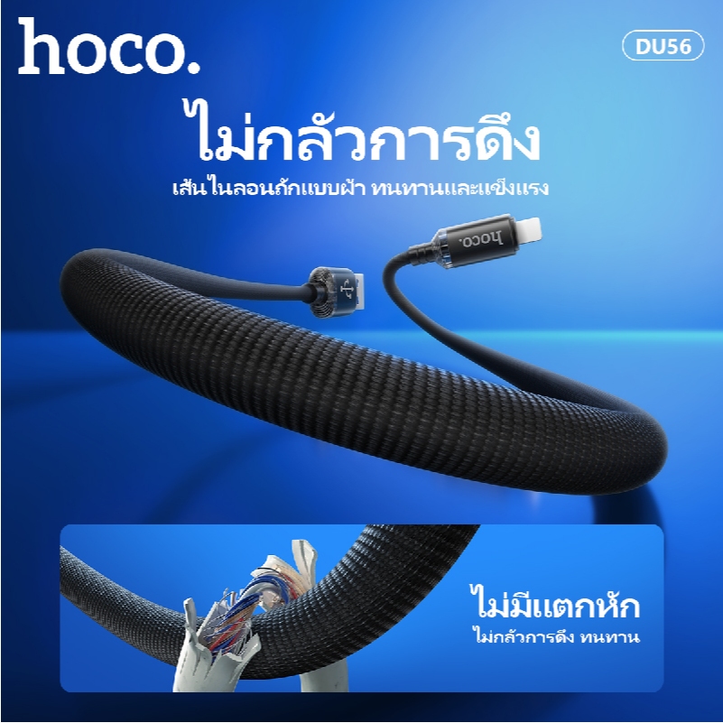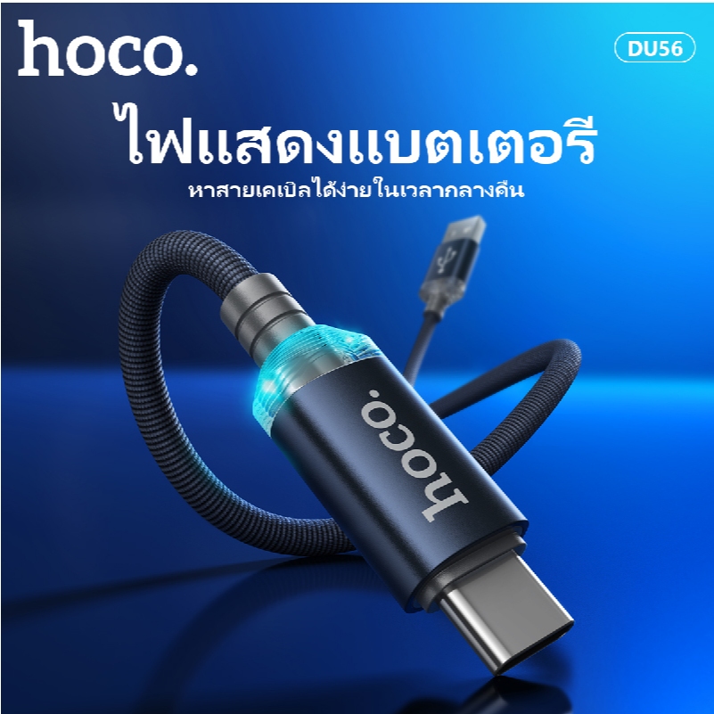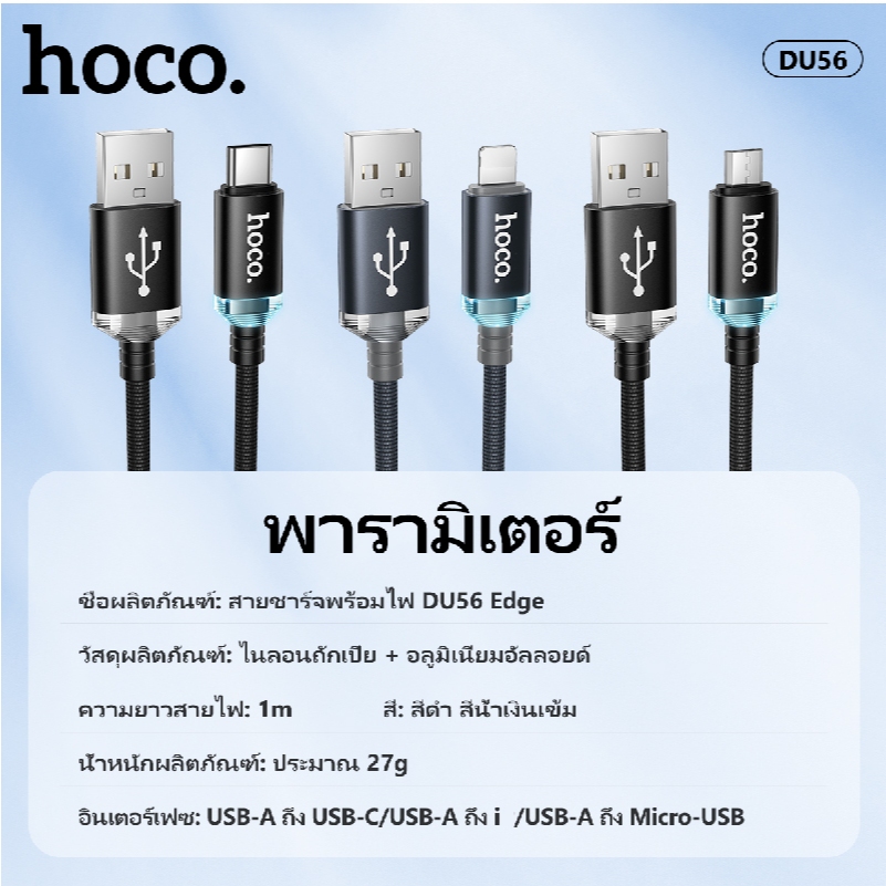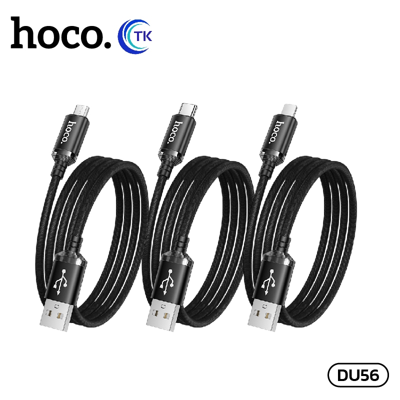 สายชาร์จโทรศัพท์/มือถือ สายถัก ไม่พันกัน ความยาว 1 เมตร จ่ายไฟสูงสุด 3.0A มีไฟ LED HOCO DU56