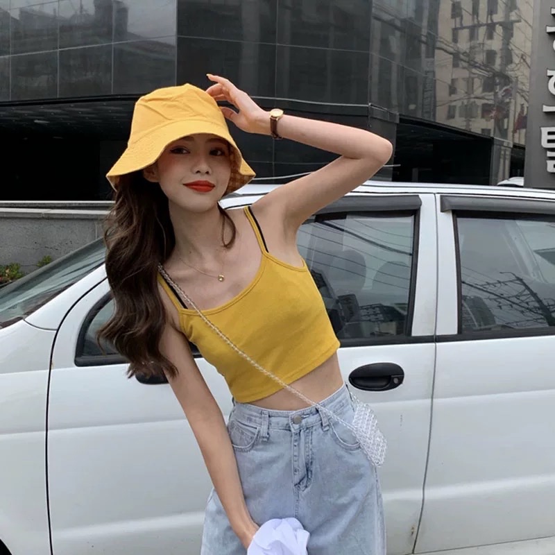 เสื้อสายเดี่ยวทรงสั้นโชว์สะดือ สไตล์สาวเซ็กซี่ สวมได้ทั้งด้านใน-นอก