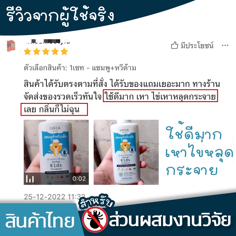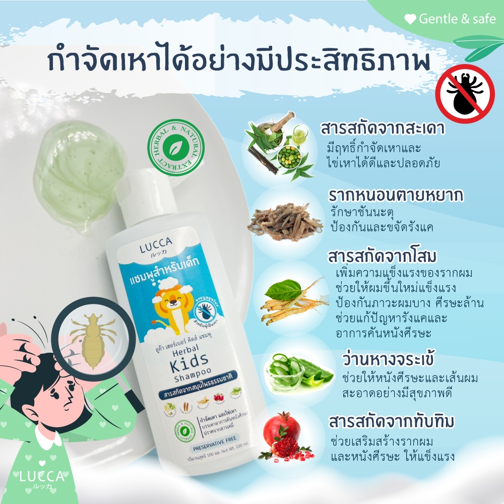 ชุดกำจัดเหาและไข่เหา💙แชมพูลูก้า สมุนไพรกำจัดเหา+ครีมนวด100ml กลิ่นหอม ผมนุ่ม แถมหวีสางเหาและหมวกคุมผม