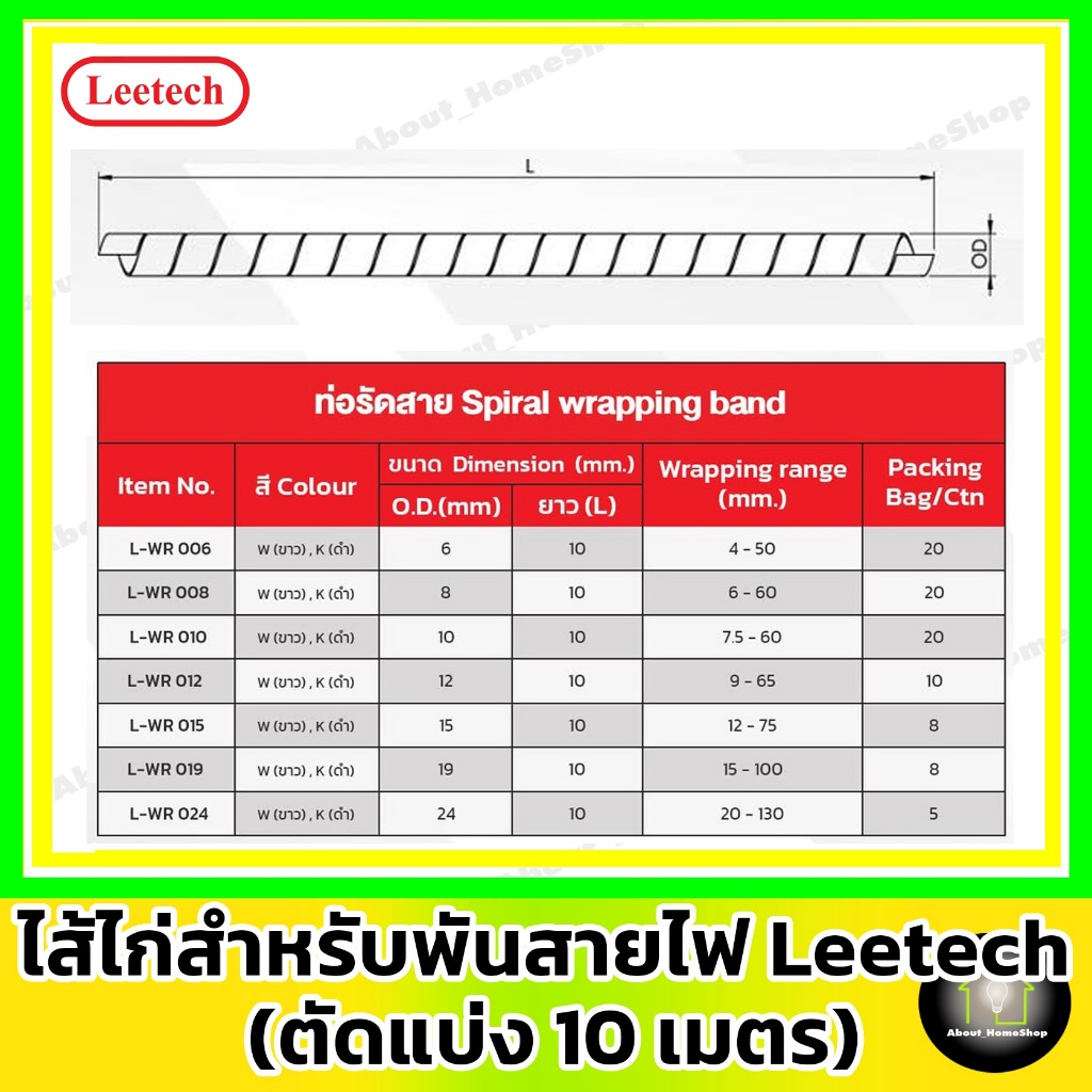 ![[ 10 เมตร ] Leetech ไส้ไก่พันสายไฟ สีขาว สีดำ 6, 8, 10, 12, 15, 19 ,24 mm ( ลีเทค Spiral Wrapping )](https://bkkmarket.com/wp-content/plugins/shopee-woocommerce-sync-v5.0/assets/Button-Shopee.webp)