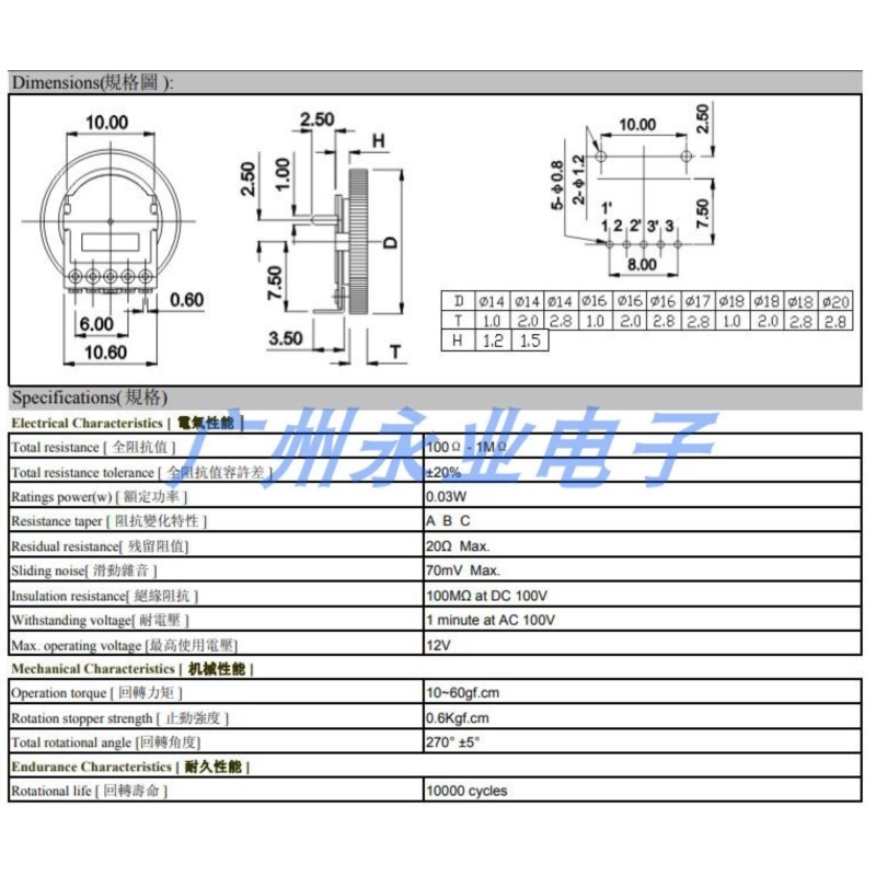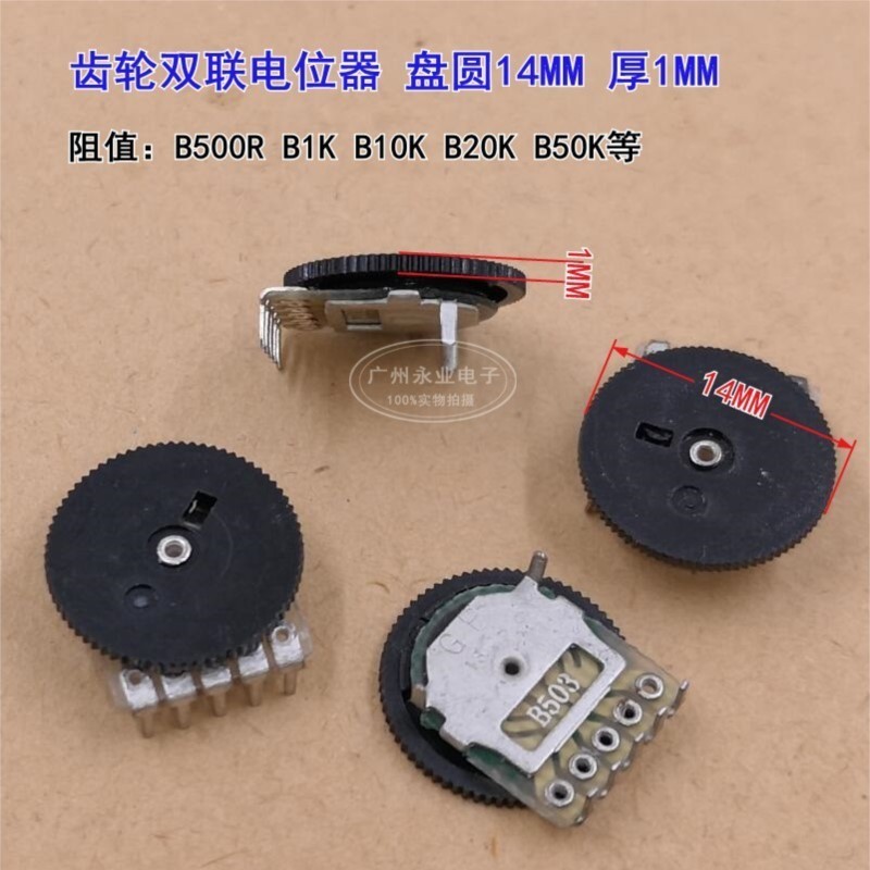 10pcs 14 * 1 มม.เกียร์คู่ Dial Potentiometer 5Pins B500R B1K B10K B20K B50K โอห์มปรับระดับเสียงสวิทช์ B501 B102 B103 B203 B503 B503