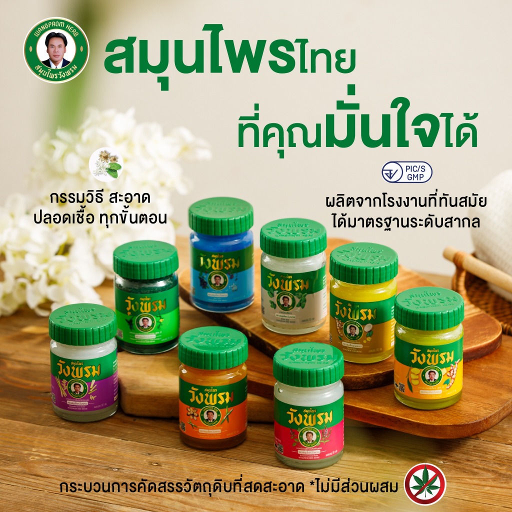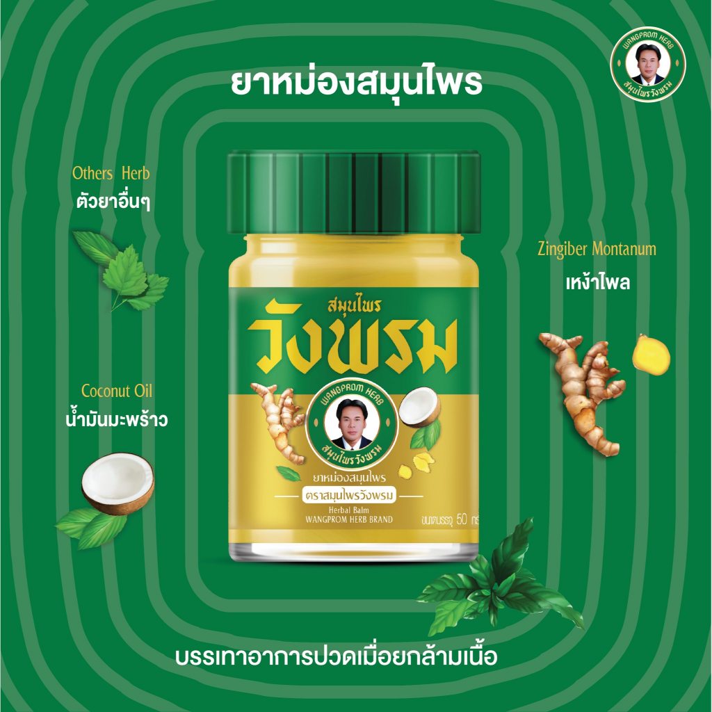 Wangpromherb (สมุนไพรวังพรม) ยาหม่องสมุนไพร สูตรร้อน 50g.+ยาหม่องสีขาว สูตรร้อน 50g. ( 1 ชุด)