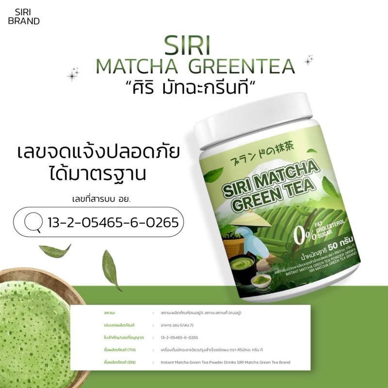 ศิริ มัทฉะชาเขียว (MATCHA GREENTEN) 1 ซอง 50 กรัม ไม่มีน้ำตาล