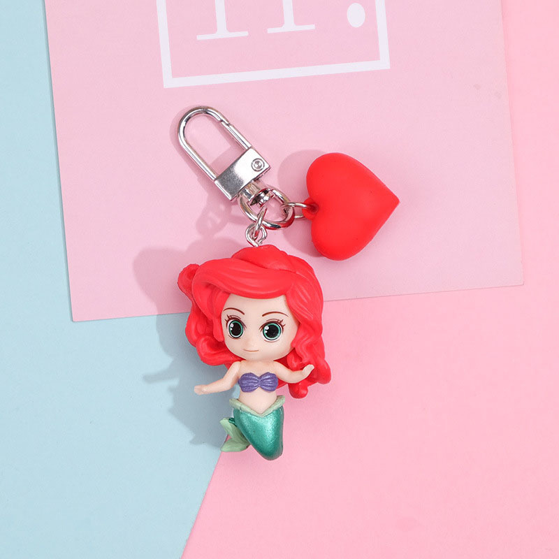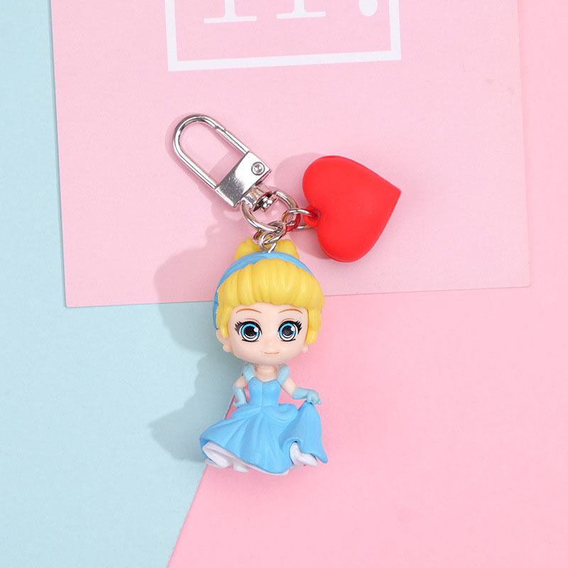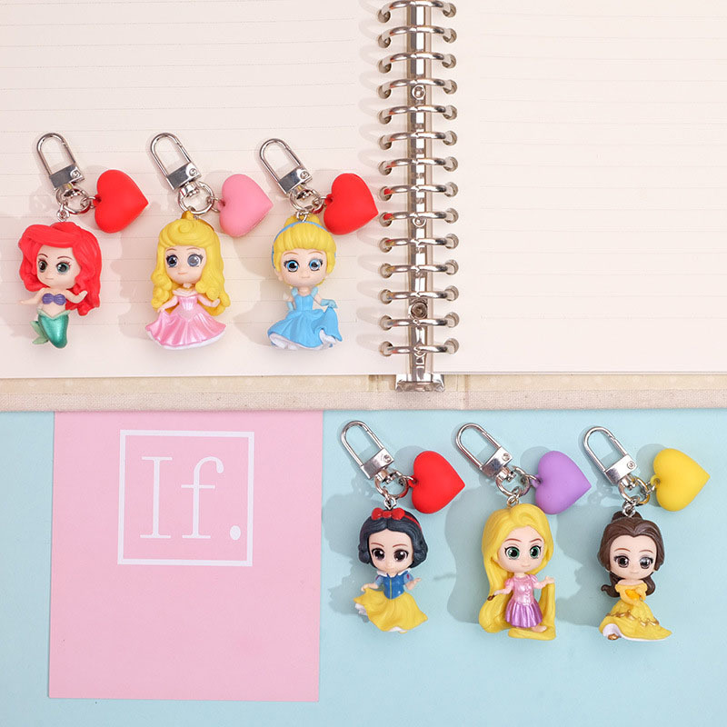 6 รูปแบบ 5 ซม.อะนิเมะ Disney Princess รูป Snow White Ariel Cinderella Rapunzel Belle พวงกุญแจกระเป๋าพวงกุญแจจี้เครื่องประดับของเล่นของขวัญวันเกิด