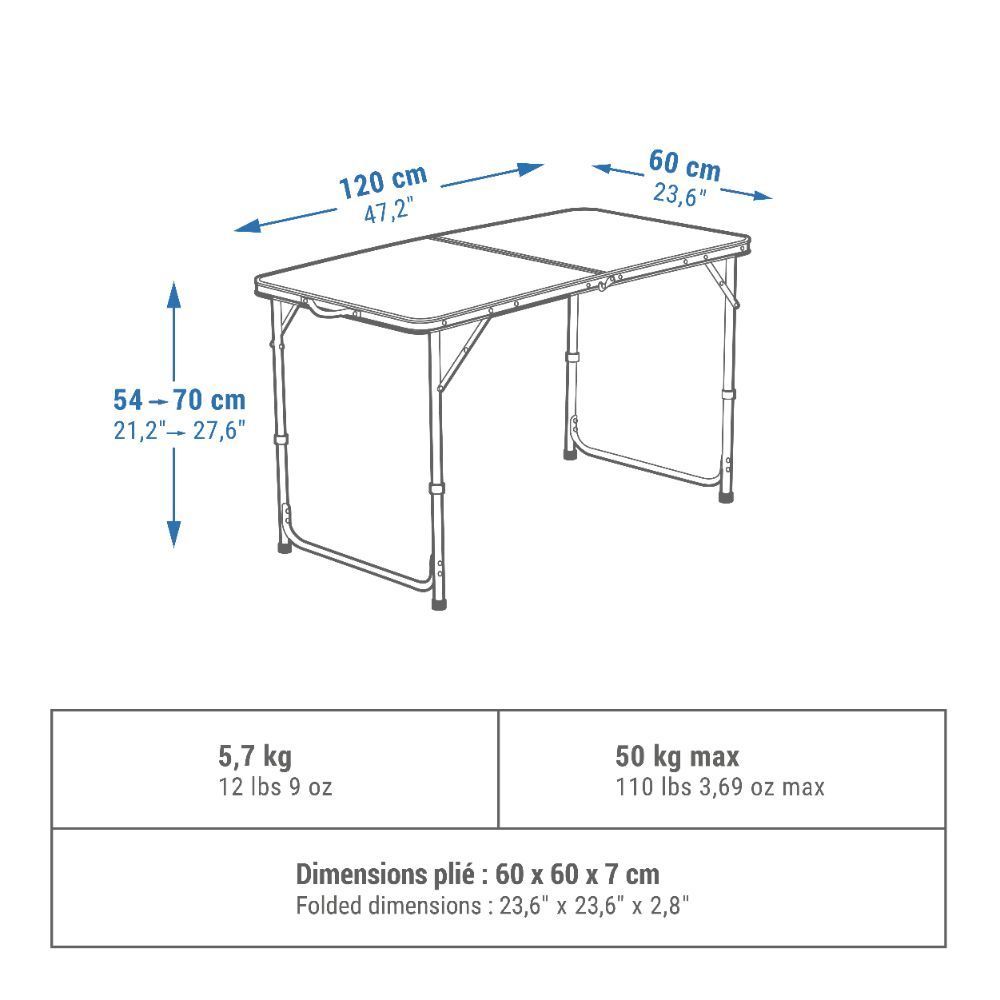 ความสะดวกสบายของผู้ใช้: ปรับความสูงได้: 45 ถึง 70 ซม. | ขนาดผิวโต๊ะ: 120 x 60 ซม. | สูงสุด 6 คน