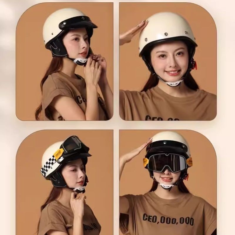 รถจักรยานยนต์ผู้หญิงหมวกแม่พิมพ์ขนาดเล็กเปลือกสไตล์ญี่ปุ่นวินเทจช้อนหมวกกันน็อก CCC รับรองความปลอดภัยสี่ฤดูระบายอากาศชายครึ่งหมวก