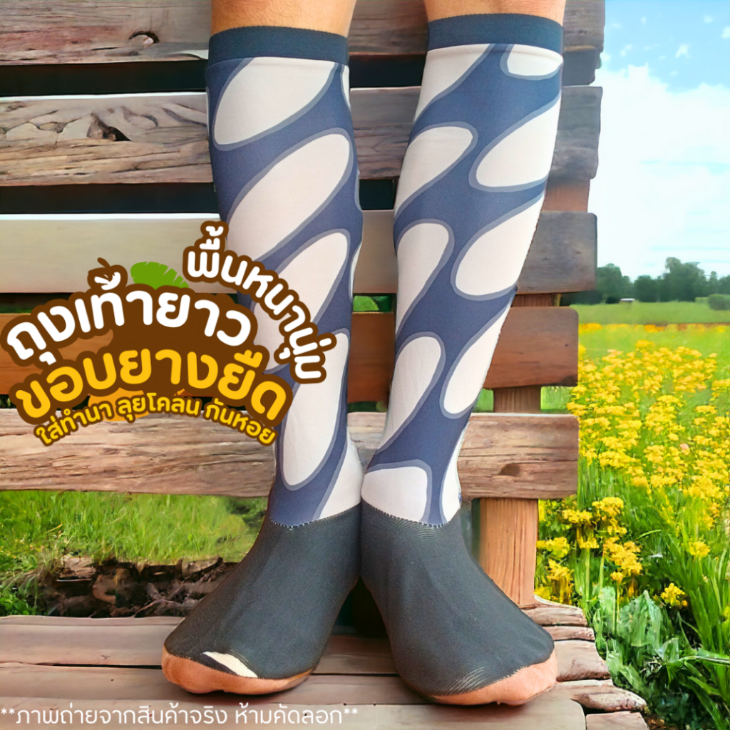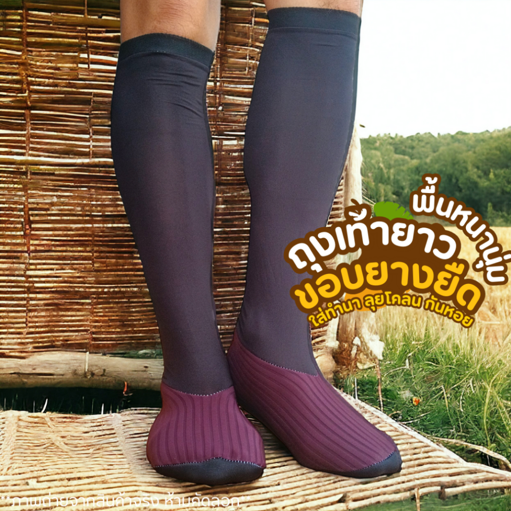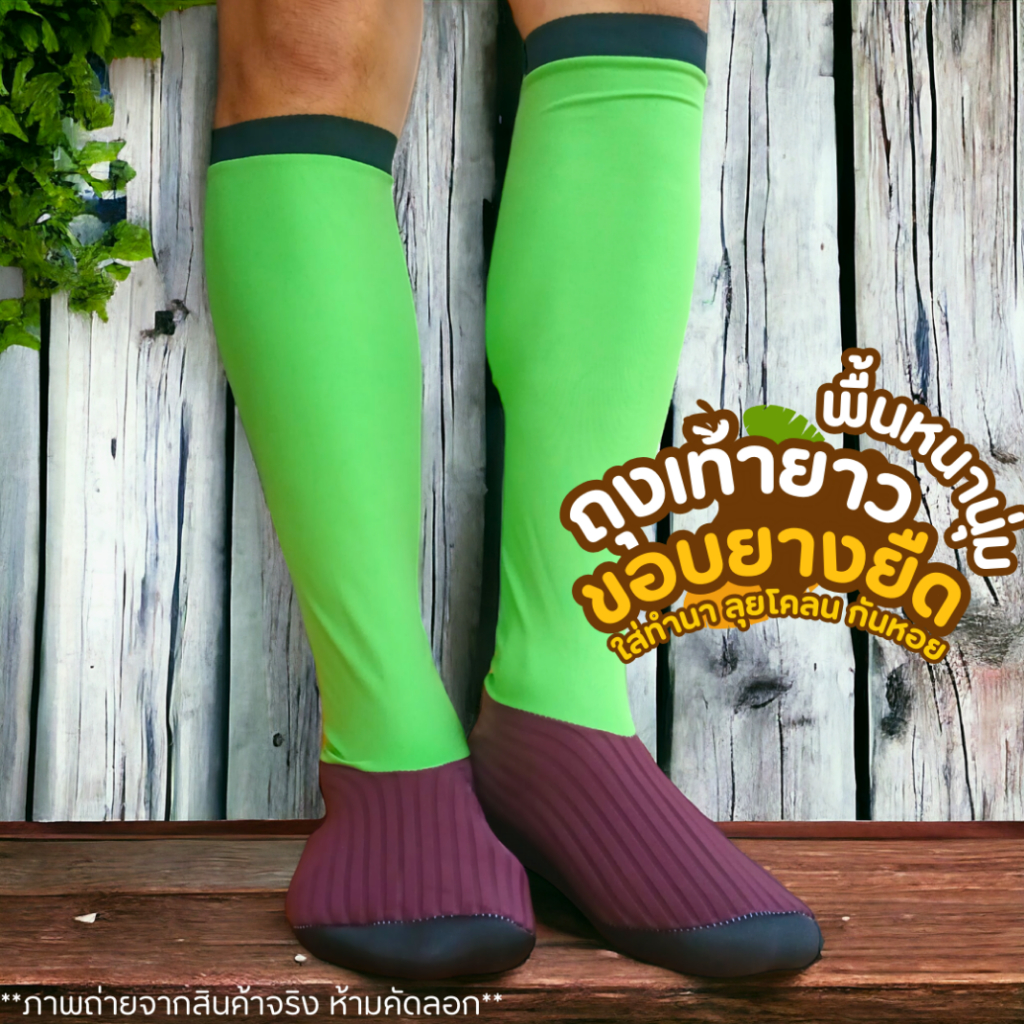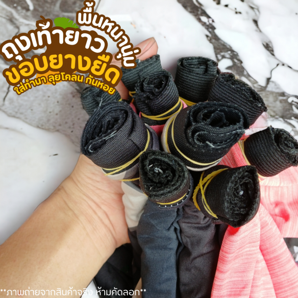ถุงเท้าลงนา ถุงเท้าตีนเป็ด รุ่นพื้นหนานุ่ม ขอบยางยืด แบบยาว ใส่กันหอย กันบาด ผ้ายืดผ้าสเตย์ ใส่กระชับ สบาย ลุยโคลน ดำนา คละสี คละลาย ฟรีไซส์