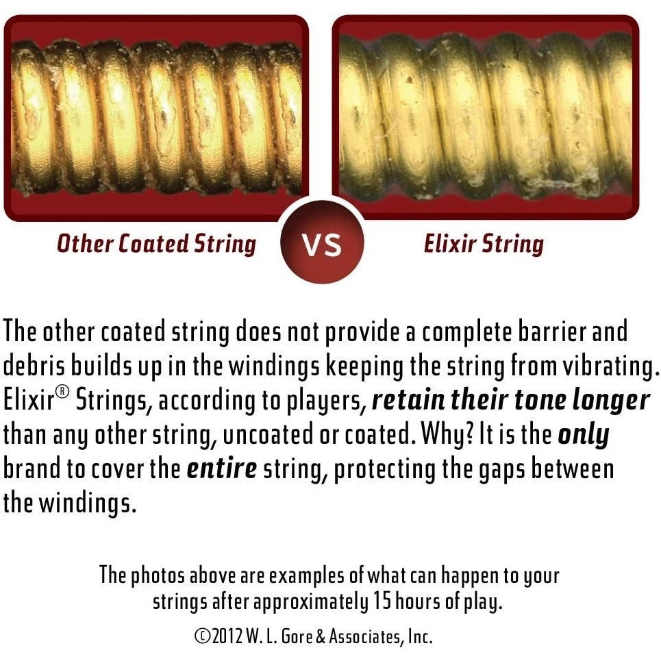 3. ยืดอายุการใช้งานของโทนเสียง – ผู้เล่นรายงานว่าสายของ Elix มีอายุการใช้งานยาวนานกว่าสายอื่น ๆ (ไม่มีการเคลือบ