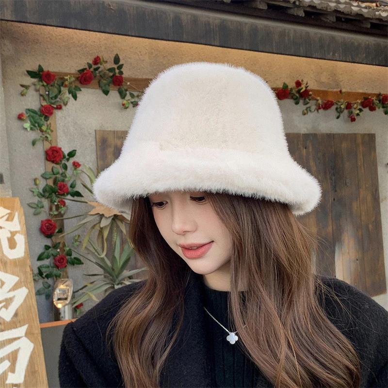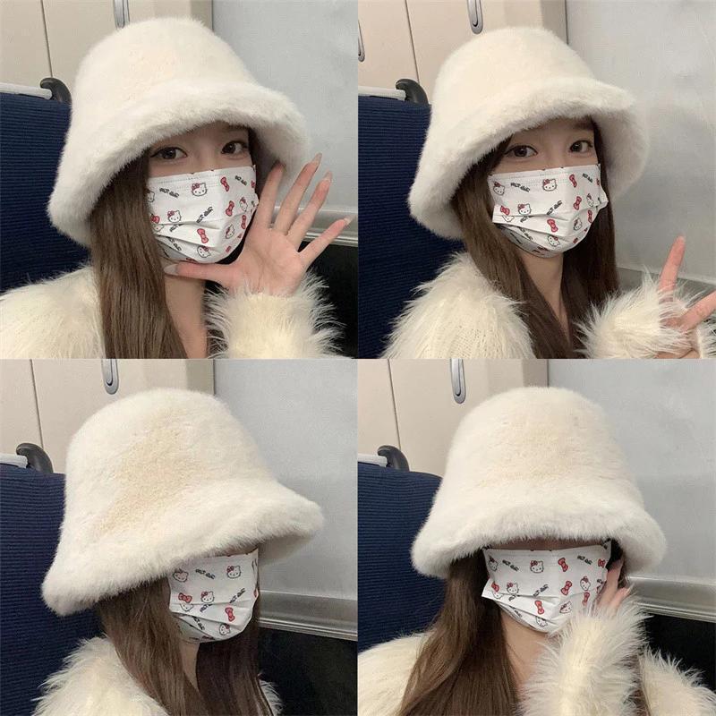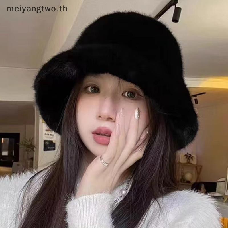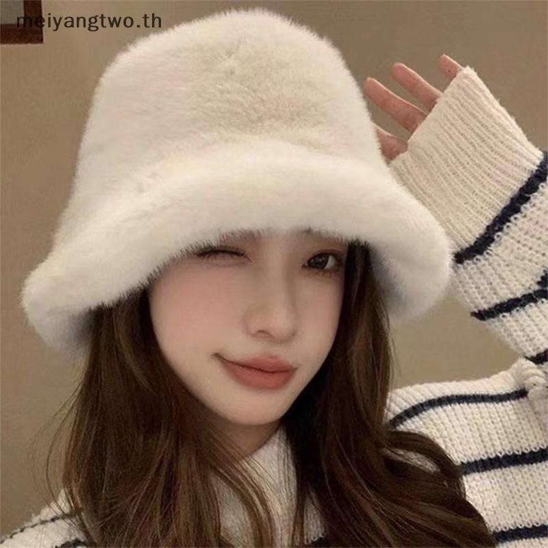 Meiyangtwo.th ฤดูหนาว Windproof Warm แฟชั่นผู้หญิงสีทึบหมวก Plush หมวกหมวก Fluffy หมวกชาวประมงป้องกันหูหมวกปานามาใหม่