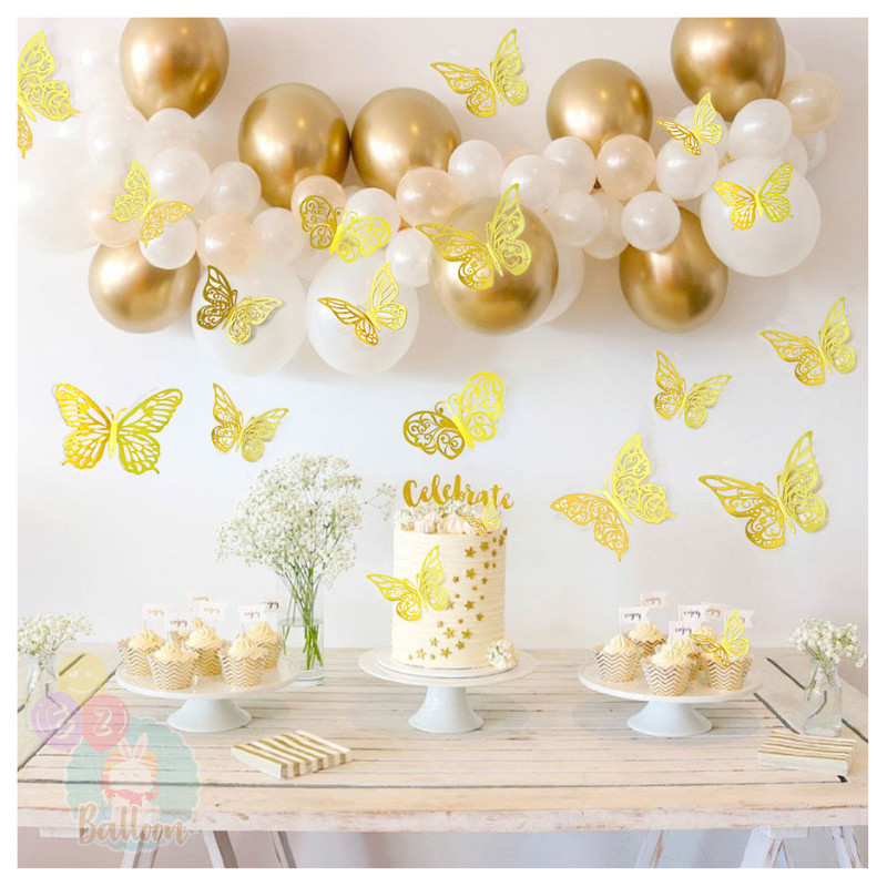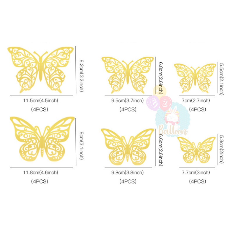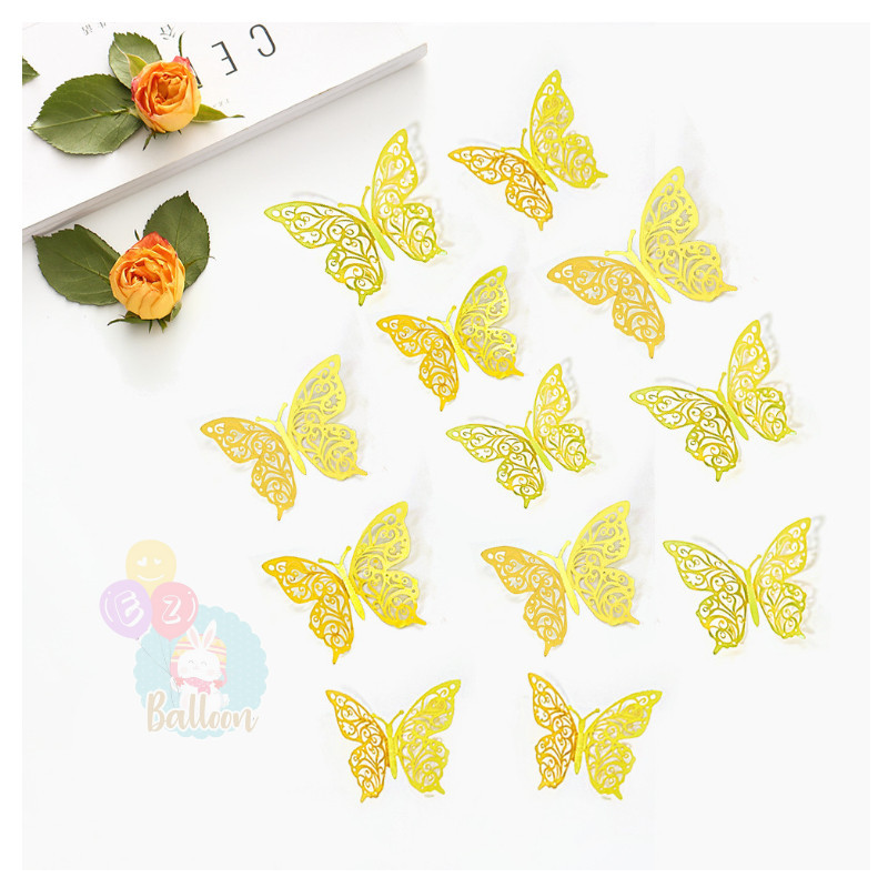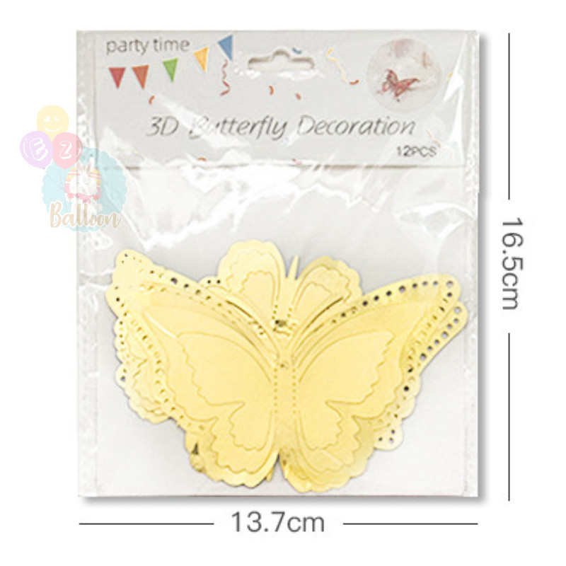 (ร้านไทย)ผีเสื้อติดผนัง ผีเสื้อตกแต่งผนัง ผีเสื้อตกแต่งเค้ก แพ็ค 12 ชิ้น