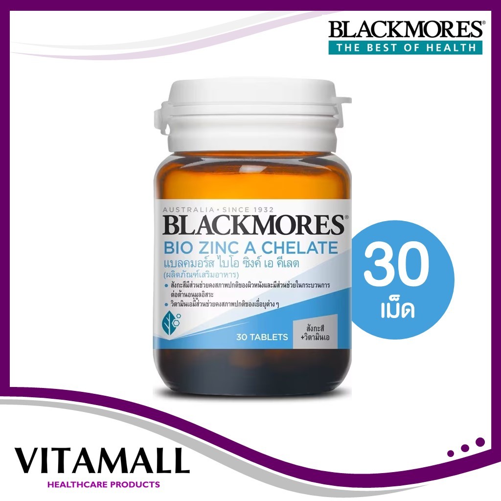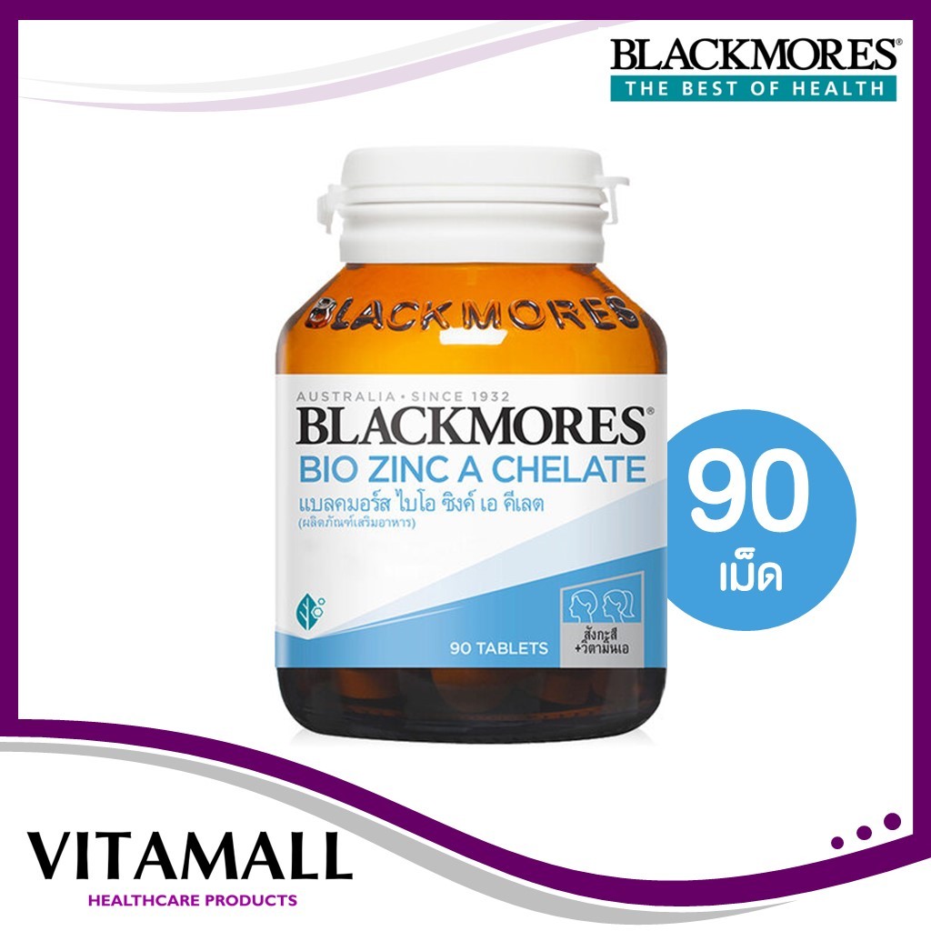 Blackmores Bio Zinc A Chelate แบลคมอร์ส ไบโอ ซิงค์ เอ คีเลต 30/90 เม็ด