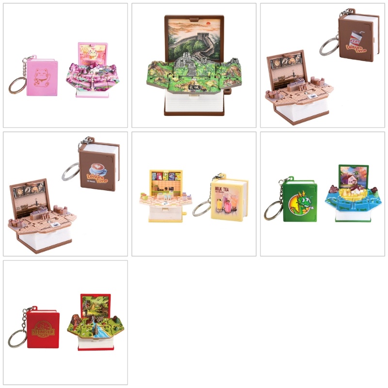 พวงกุญแจหนังสือป๊อปอัพพับ 3D พวงกุญแจปริศนาวิทยาศาสตร์สำหรับเด็กพวงกุญแจไดโนเสาร์แปลกใหม่