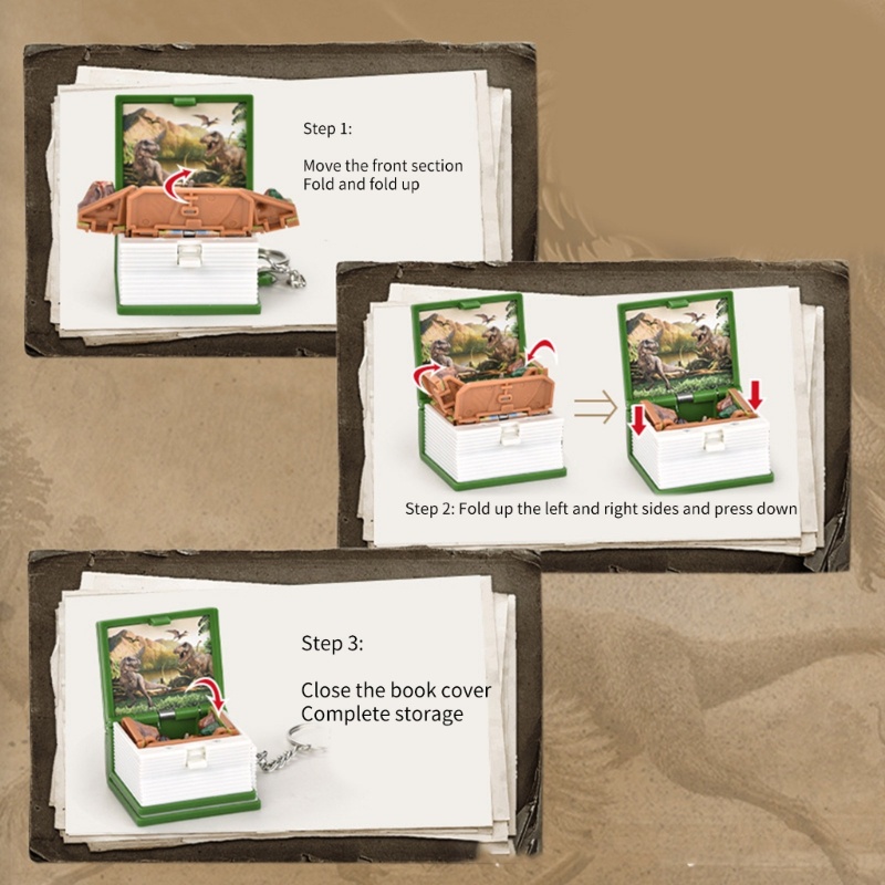 Kellnny 3D Fold Popup Book พวงกุญแจเด็กวิทยาศาสตร์ปริศนาไดโนเสาร์แปลกใหม่พวงกุญแจ