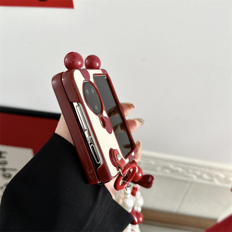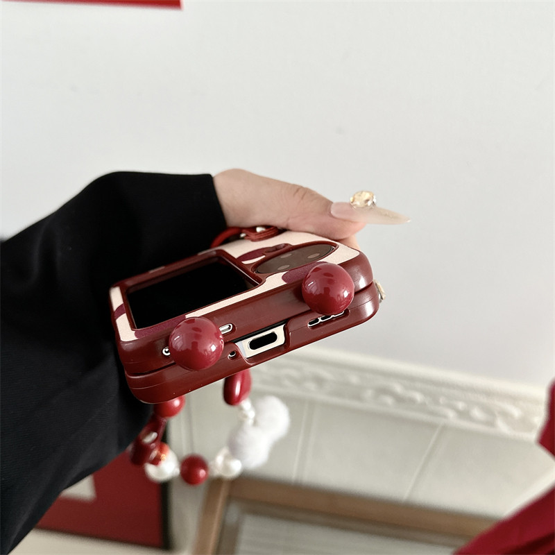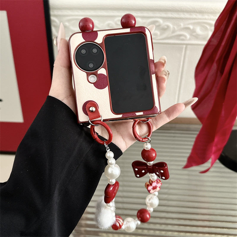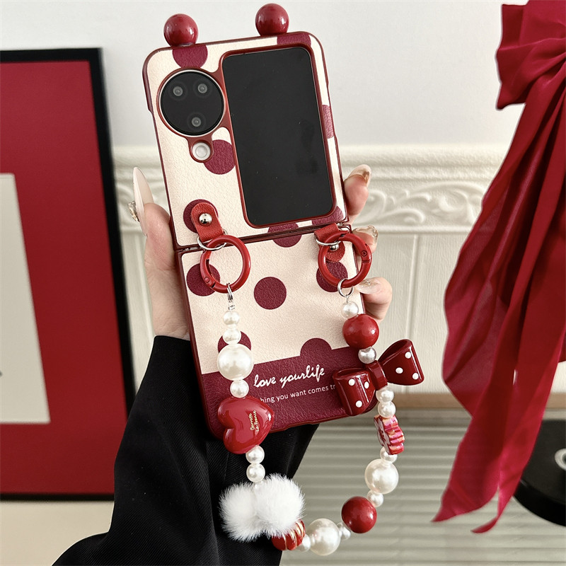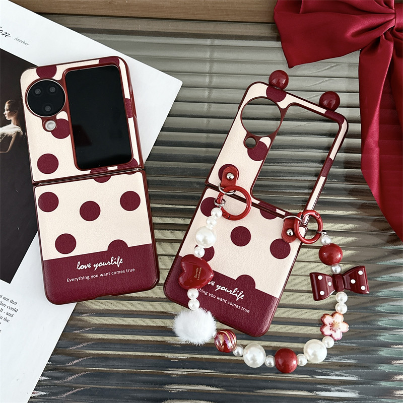 ลายจุดสีแดงรูปแบบกันชน Slim รูปแบบปลอกสําหรับ OPPO Find N3 N2 Flip ออกแบบเฉพาะ Fineทอ PU N3Flip N2Flip สร้อยคอเคสโทรศัพท์