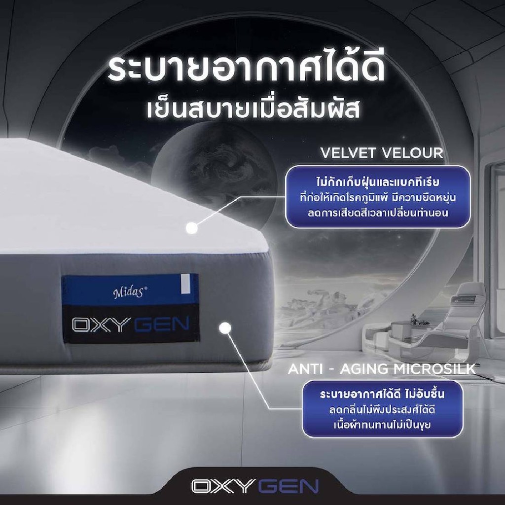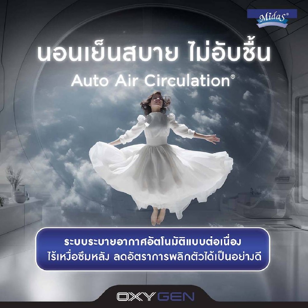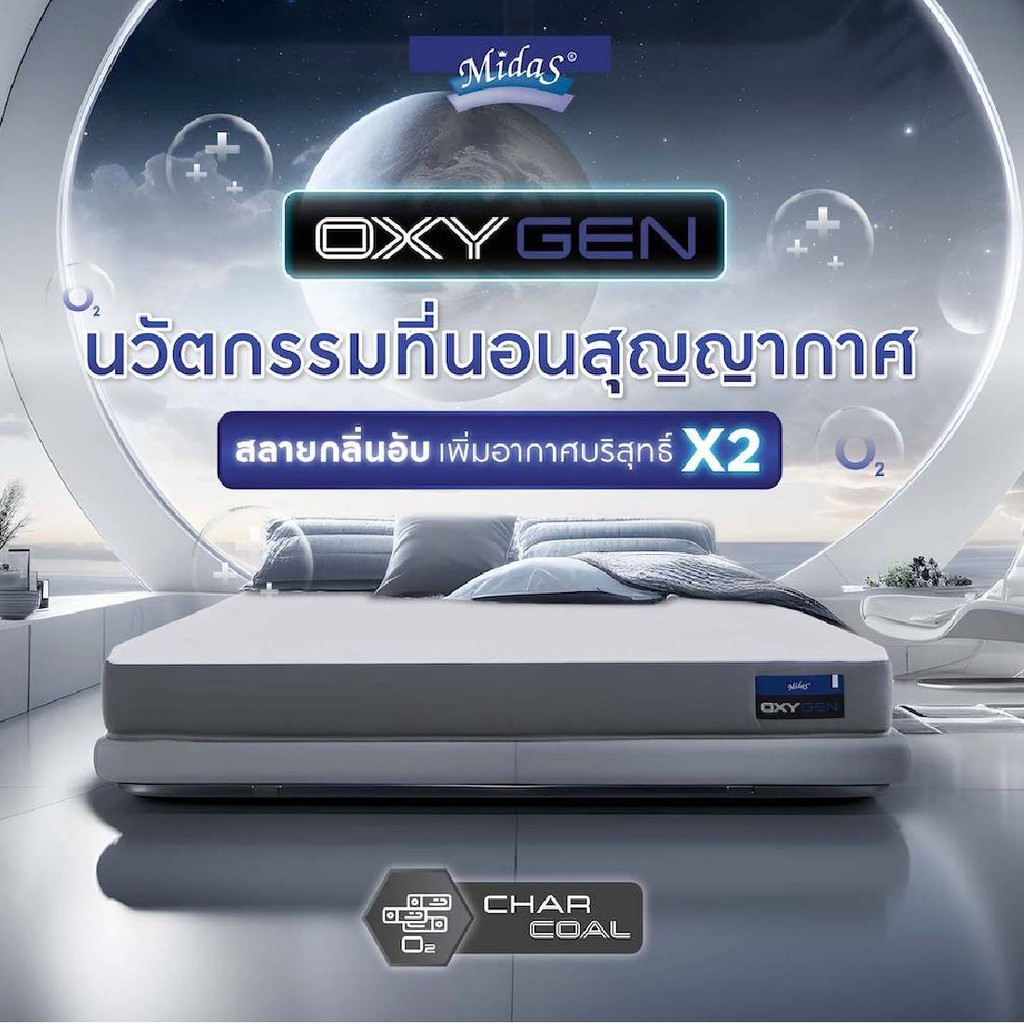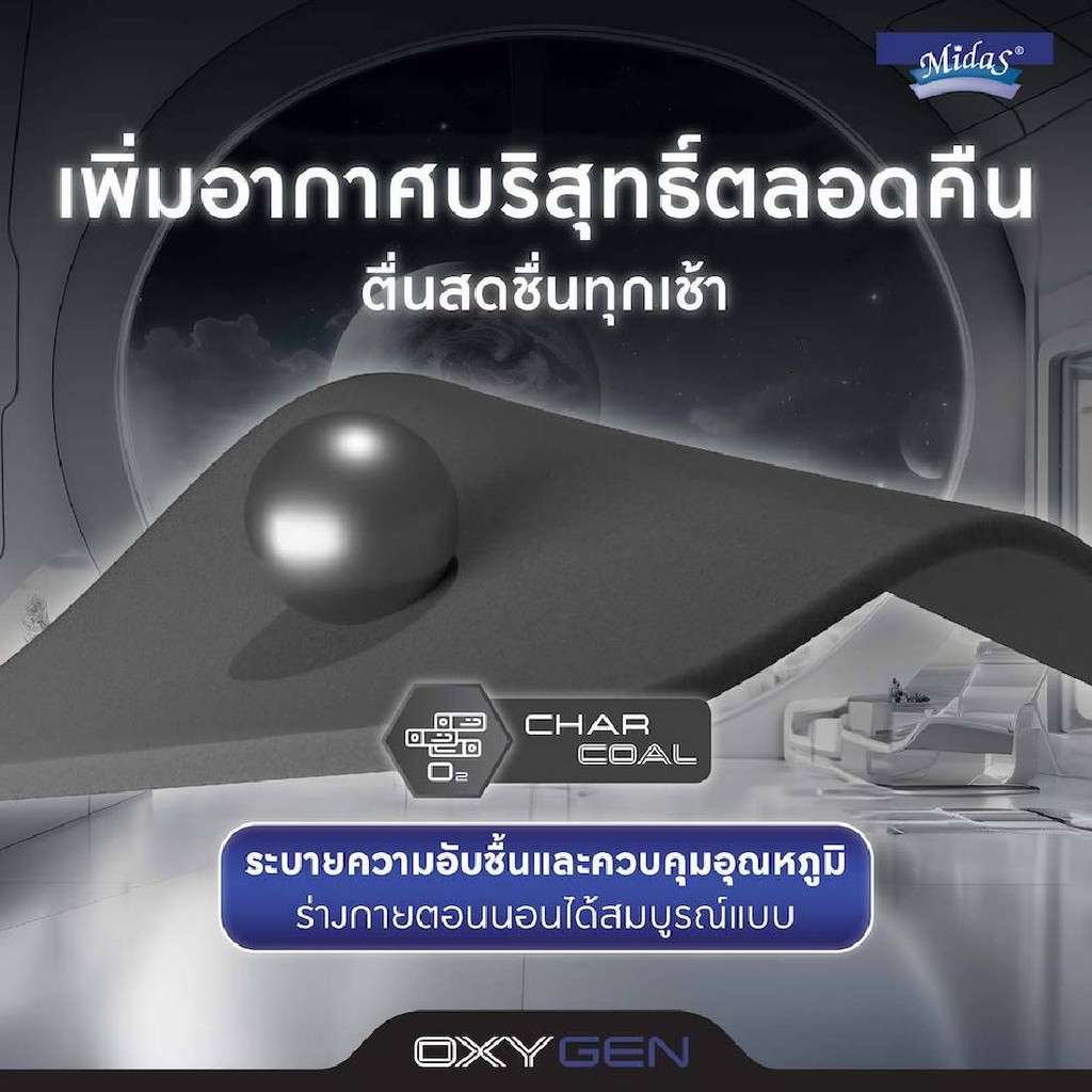 ที่นอน Midas รุ่น Oxygen มาพร้อมนวัตกรรมชั้นโฟมชาร์โคลที่มีโครงสร้างพิเศษช่วยระบายอากาศได้ถึงขีดสุด มอบความปลอดโปร่งให้คุณหายใจสะดวกยามนอนหลับมากขึ้น ทั้งสามารถถ่ายเทความอับชื้นและช่วยควบคุมอุณหภูมิให้เหมาะสมต่อการนอนหลับ ขจัดอุปสรรคที่รบกวนการพักผ่อนให้ค