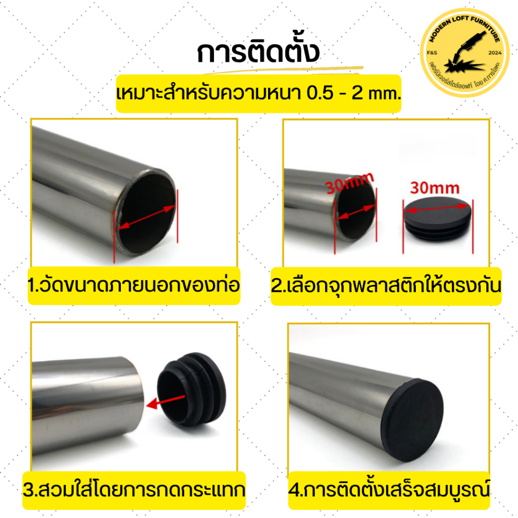 ติดตั้งง่าย: เพียงสวมเข้ากับปลายท่อเหล็กกลมก็สามารถใช้