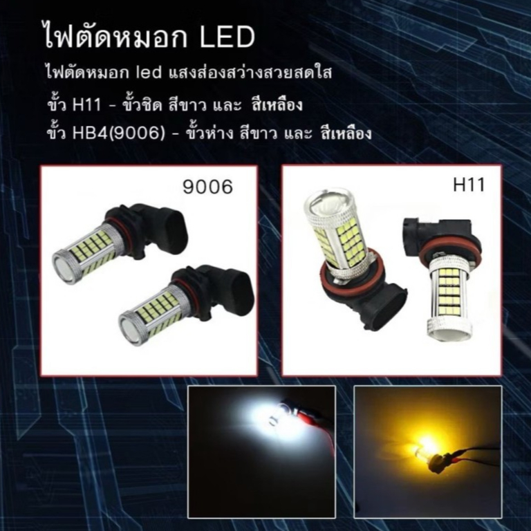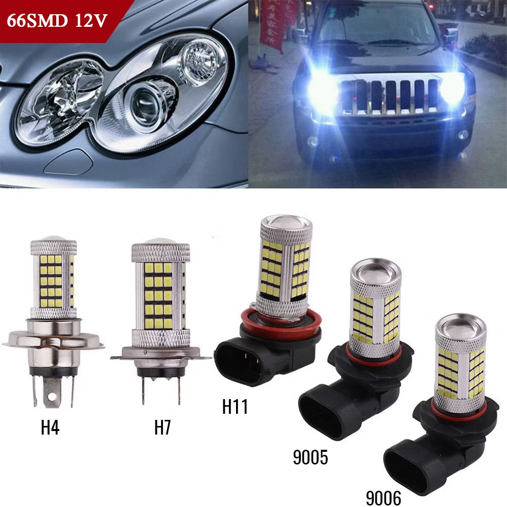 NEW หลอดไฟตัดหมอก ไฟหน้า(1คู่) 66LED 2835 สําหรับรถยนต์/มอไซค์ (H11)H8 HB4/9006 H4 มีสีให้เลือก 12V