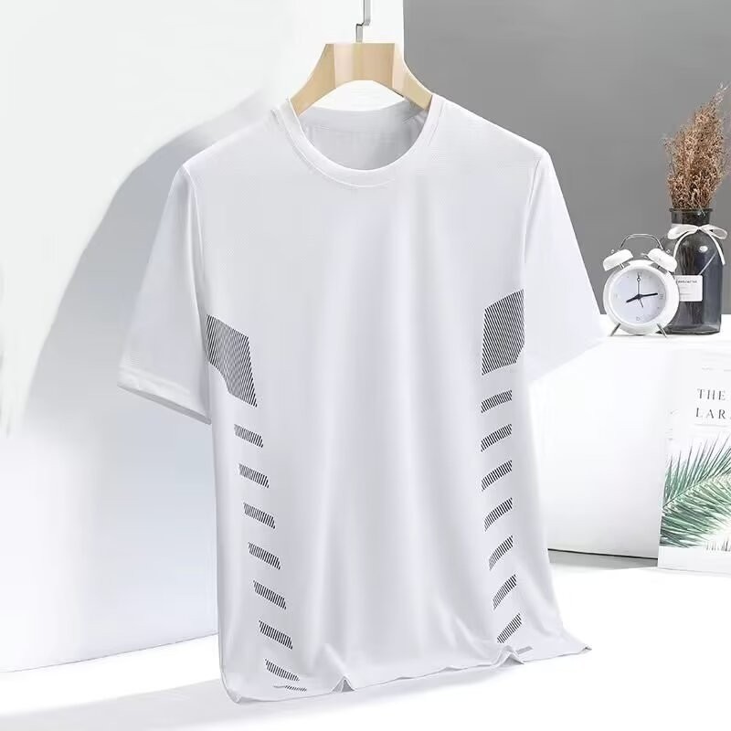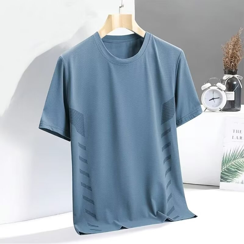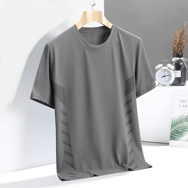 เสื้อยืดผู้ชายแห้งเร็วระบายอากาศกีฬาแขนสั้นตาข่ายบางรู้สึกน้ำแข็งวิ่งออกกำลังกายแขนสั้น