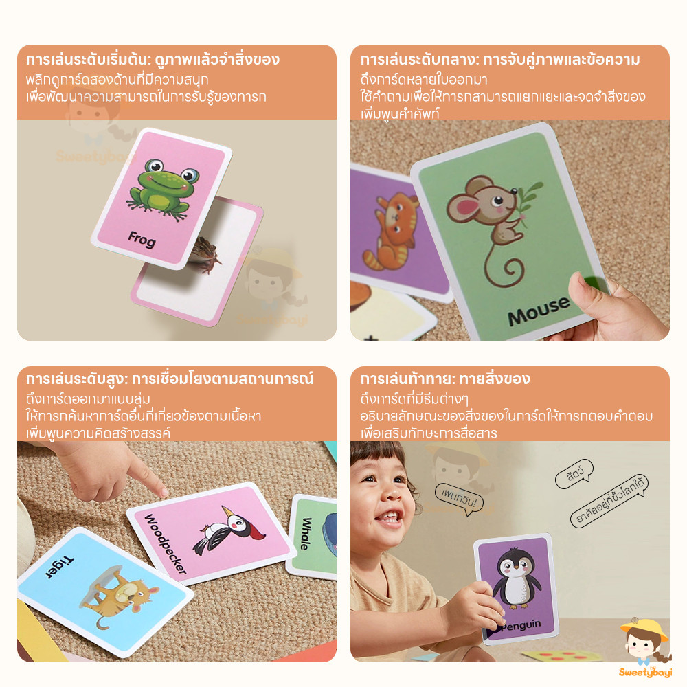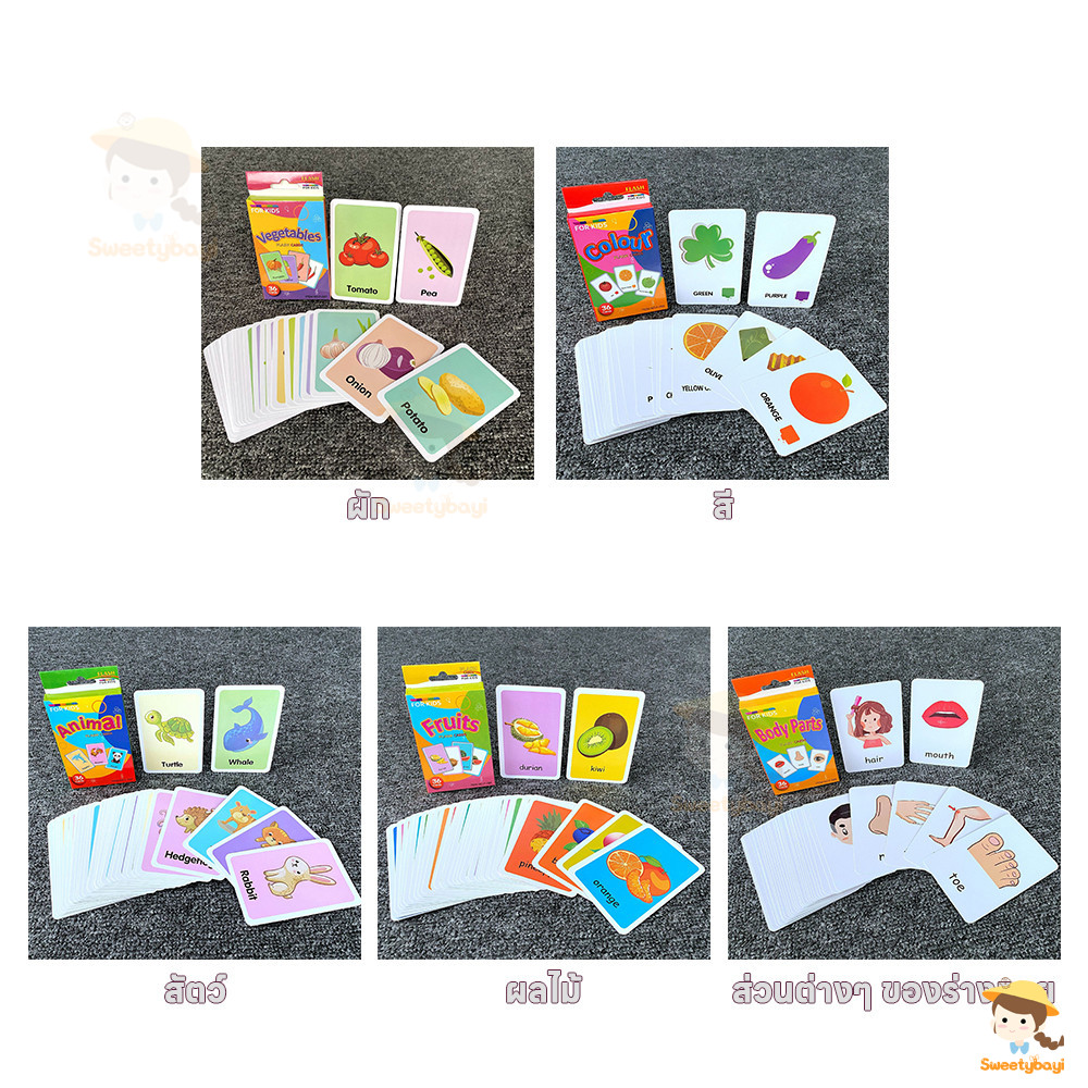SWEETYBAYI บัตรคํา flashcard เสริมสร้างพัฒนาการเด็ก ชุดแฟลชการ์ด ฝึกความจำ color vegetable ของเล่นเด็ก
