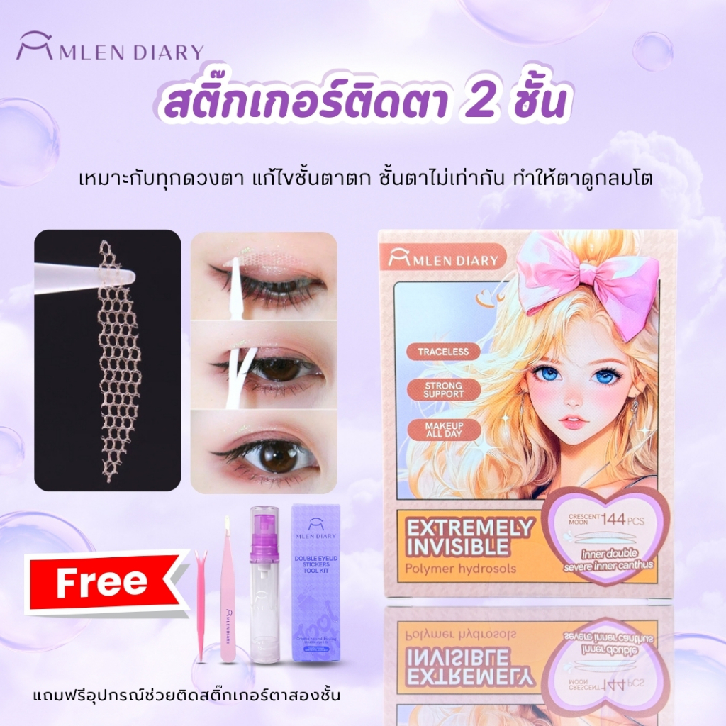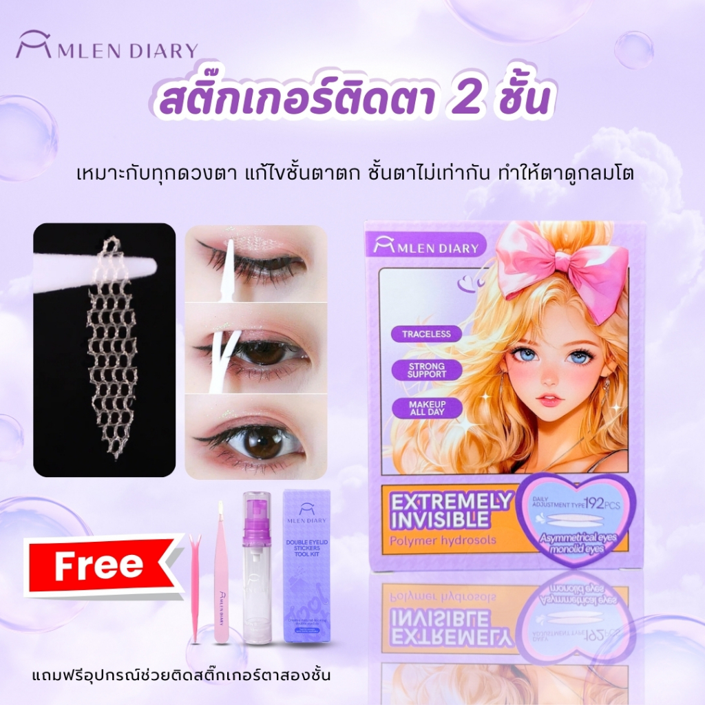 ที่ติดตาสองชั้น แบบตาข่ายกันน้ำไม่ง้อกาว (พร้อมขวดสเปรย์ฉีดน้ำ+แหนบ+ไม้ดันเปลือกตา)อุปกรณ์ครบชุด