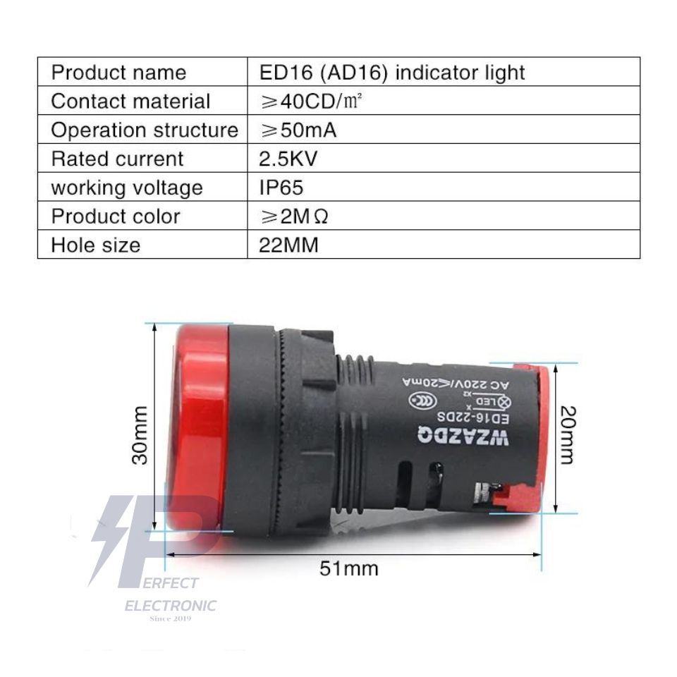 ED16-22DS PNC ไฟแสดงสถานะ LED สัญญาณ มีหลายสีให้เลือก (รับประกันสินค้า 6 เดือน) มีสินค้าพร้อมส่งในไทย