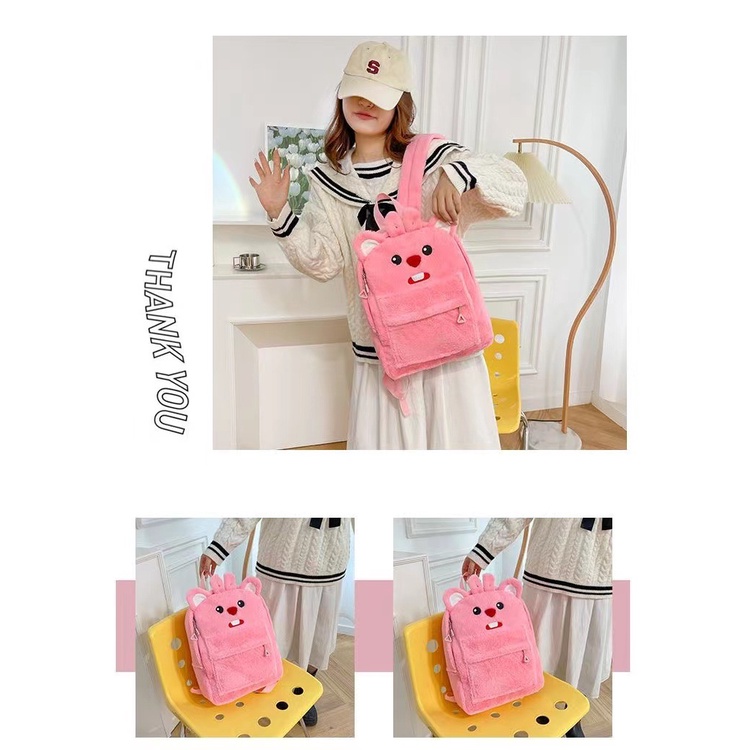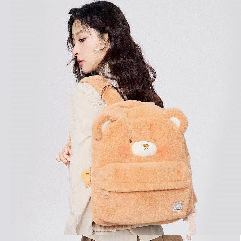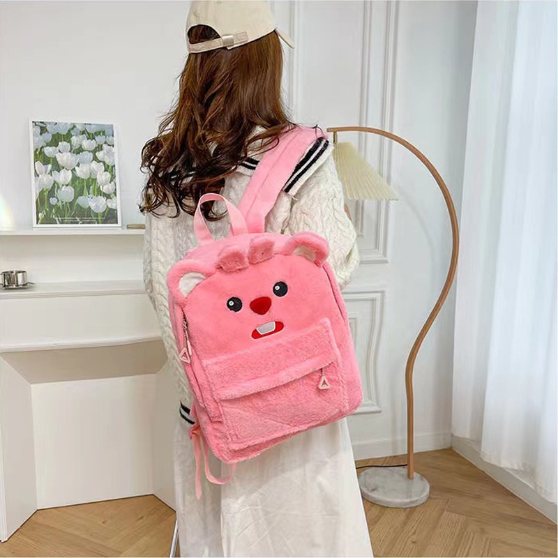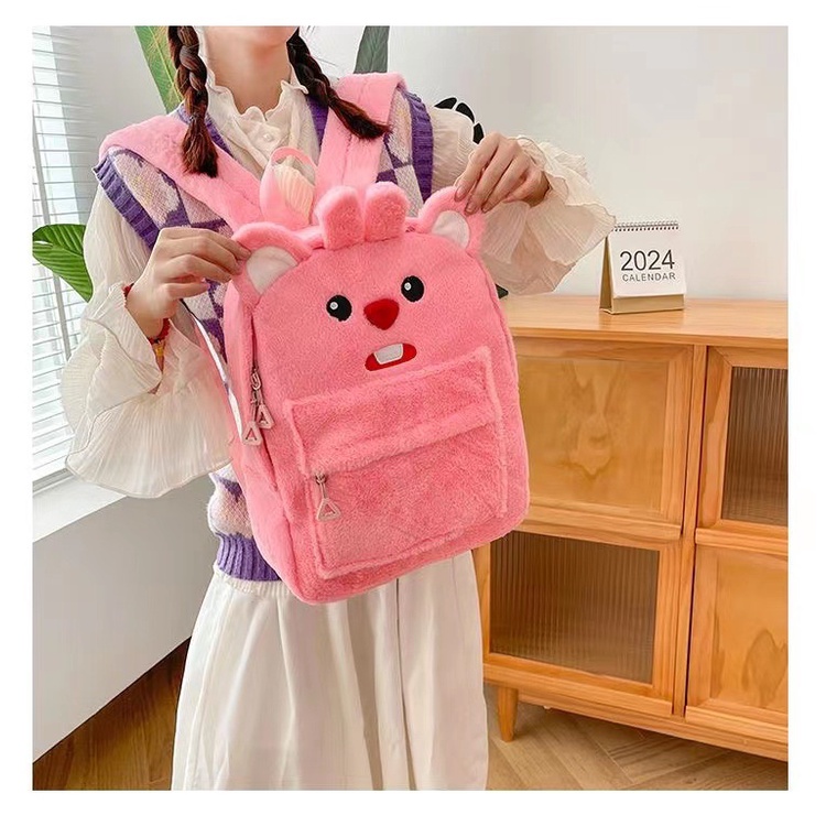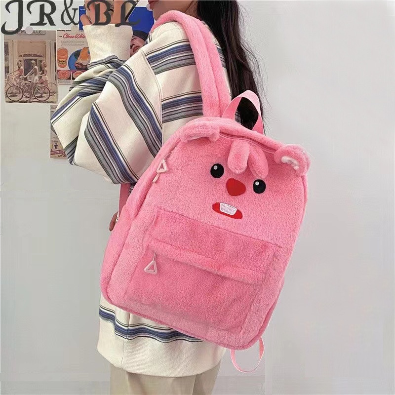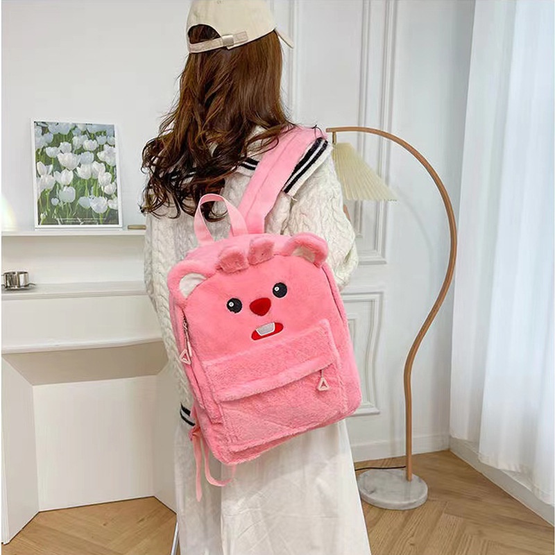 กระเป๋าเป้นักเรียนความจุขนาดใหญ่พร้อมขนกํามะหยี่น่ารัก