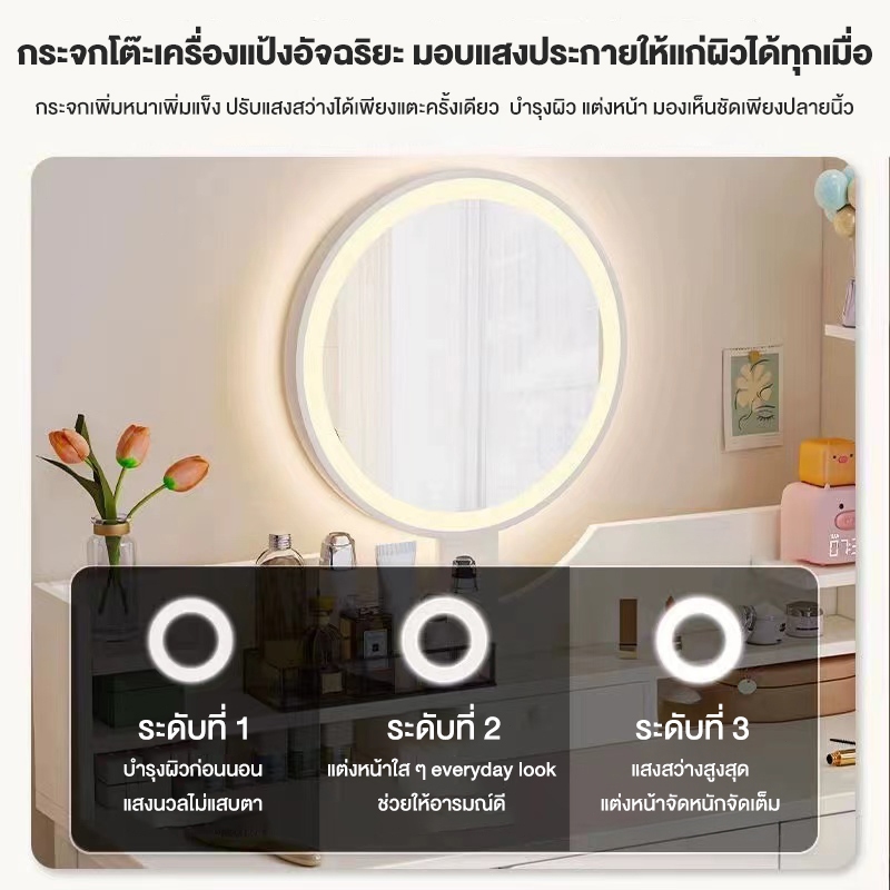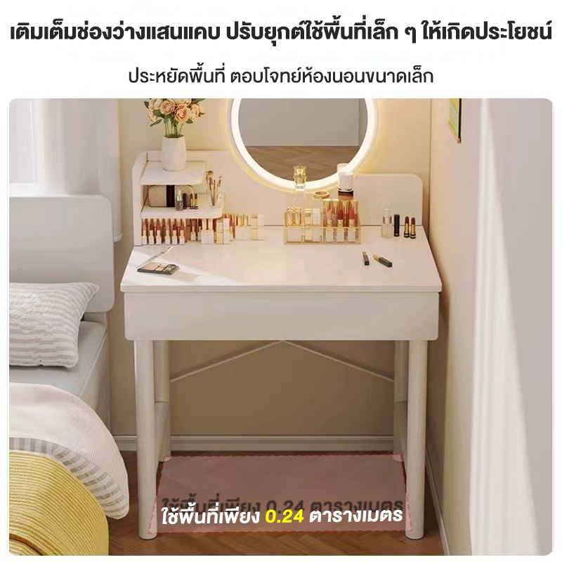 home_era โต๊ะเครื่องแป้ง โต๊ะเครื่องแป้งไม้ พร้อมกระจกความละเอียดสูงและไฟ LED โต๊ะห้องนอนเรียบง่าย ตู้แต่งตัวขนาดเล็ก โต๊ะเครื่องแป้งรูปแบบใหม่ โต๊ะทำงาน。