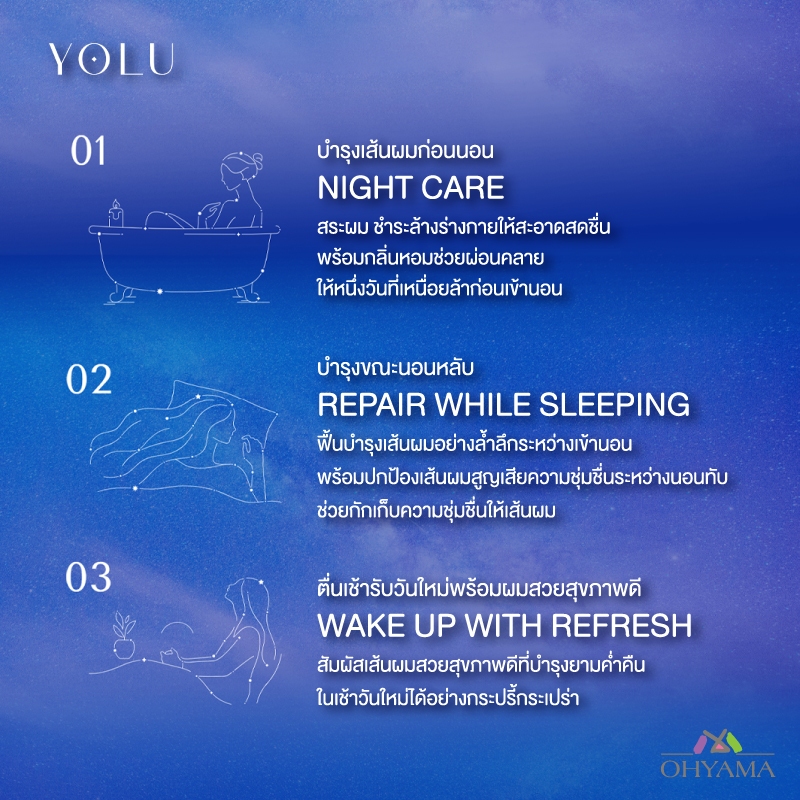 ผลิตภัณฑ์ดูแลเส้นผม แบรน YOLU จากประเทศญี่ปุ่น