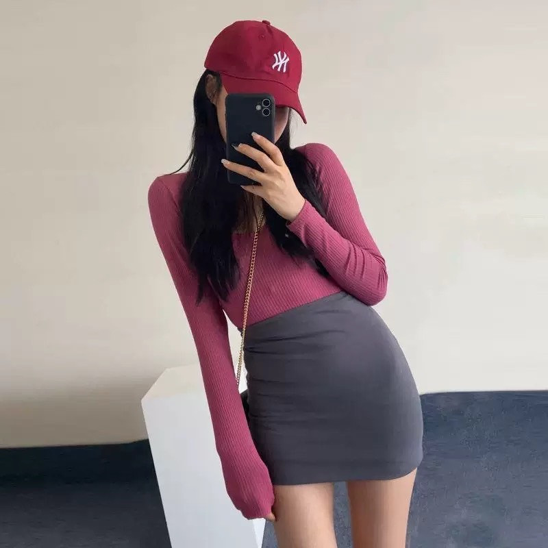 💕 Alva💕   กระโปรงทรงเอมินิ ผู้หญิง เอวสูง ฤดูร้อน แน่นยืดสั้น สุดเซ็กซี่  #9159