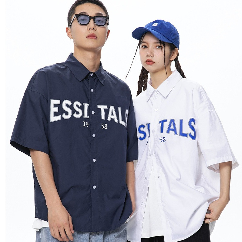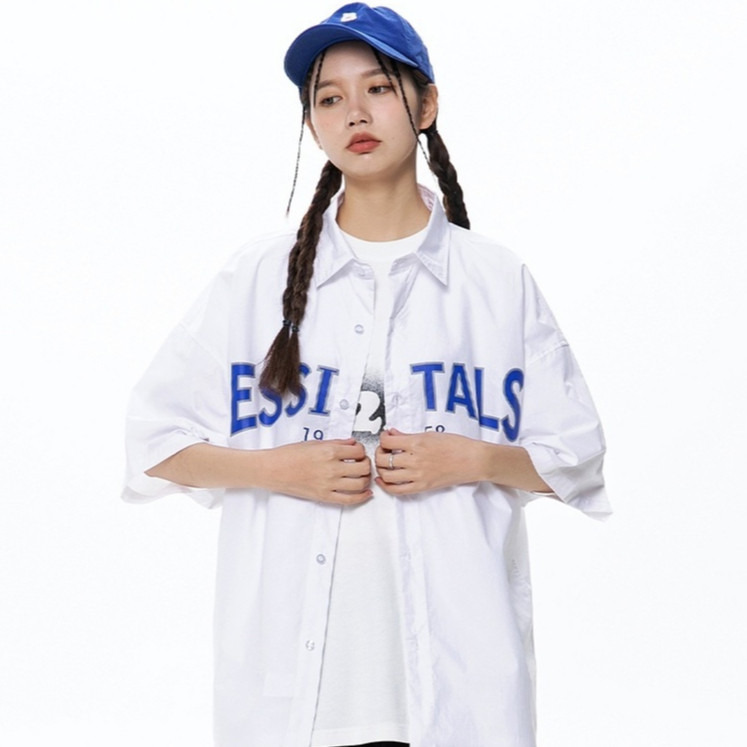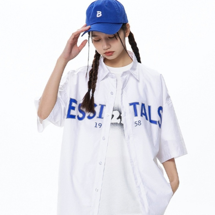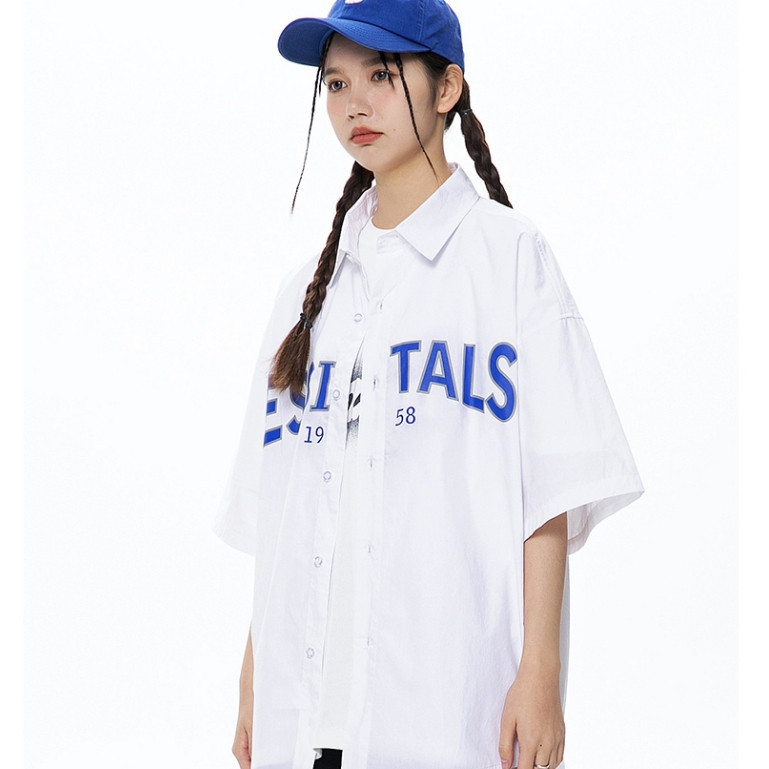 CLIFF เสื้อเชิ้ตแขนสั้น พิมพ์ลายตัวอักษร แนววินเทจสไตล์ญี่ปุ่น แบบหลวมลำลอง ใส่ได้ทั้งชายและหญิง