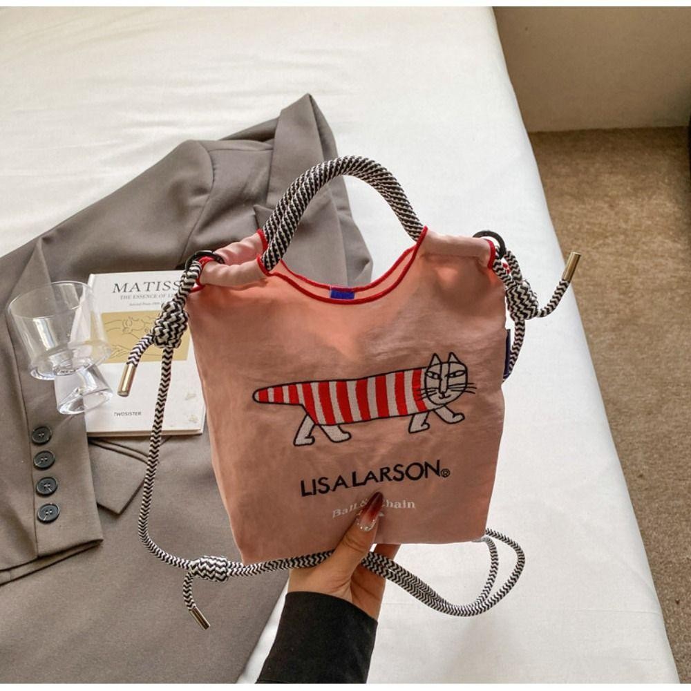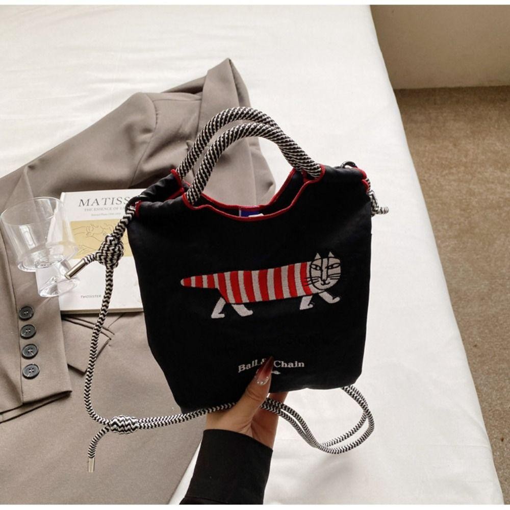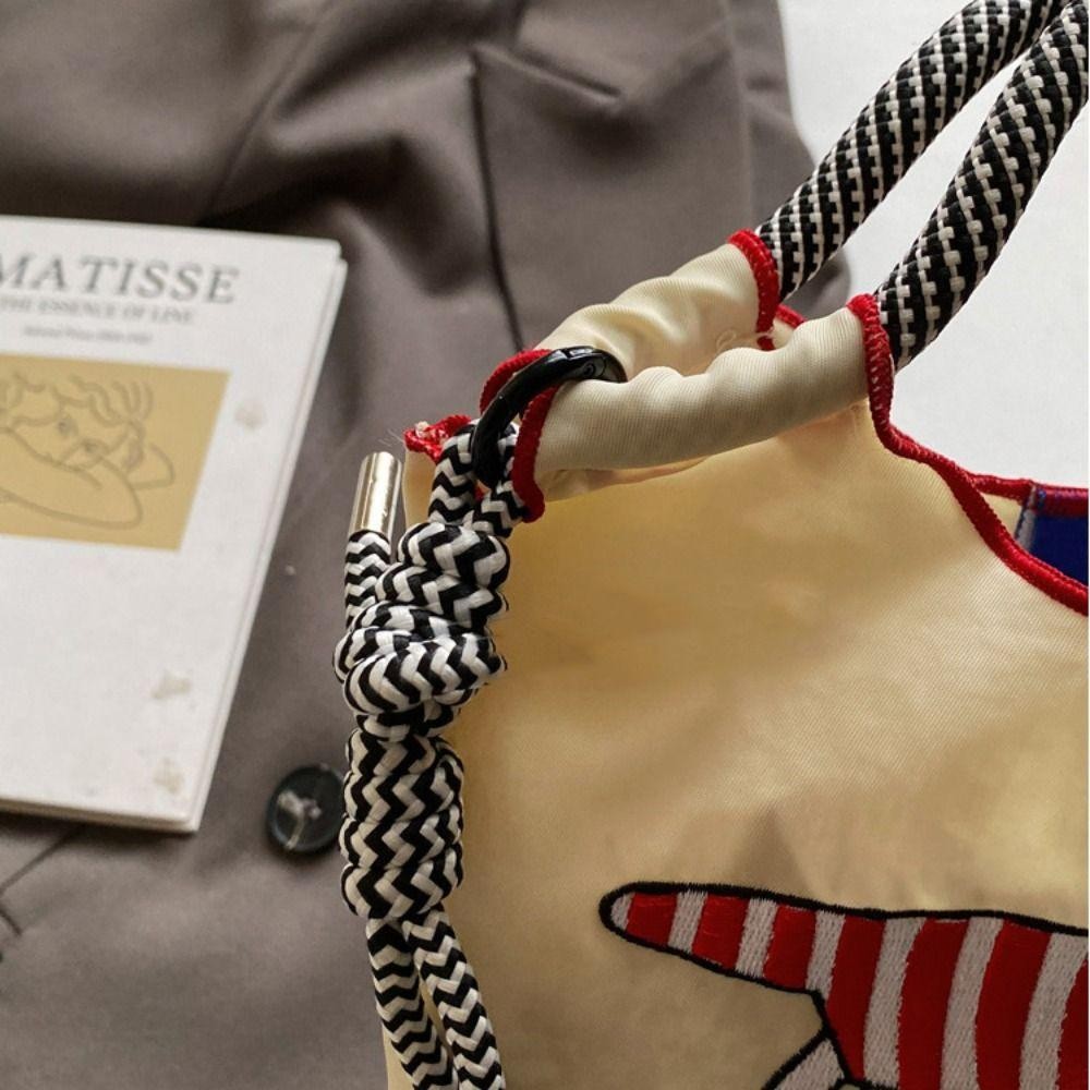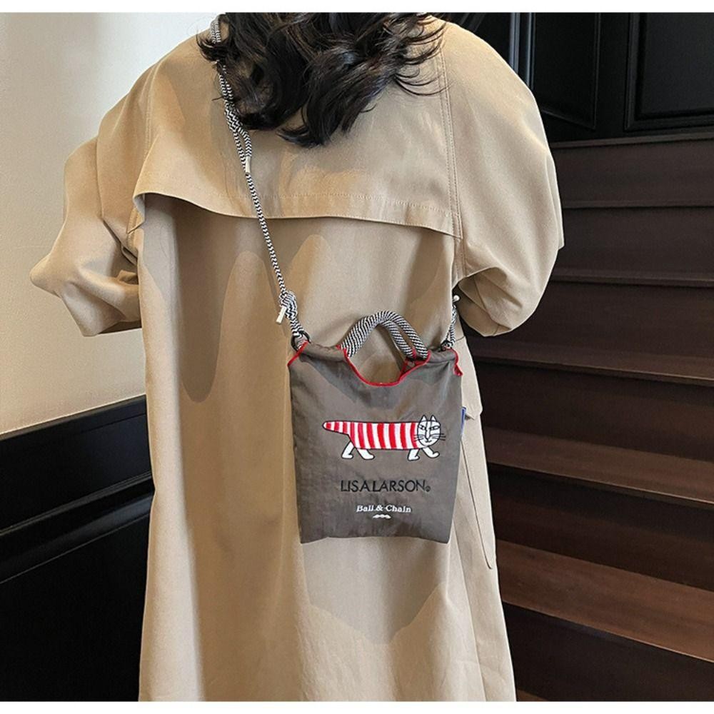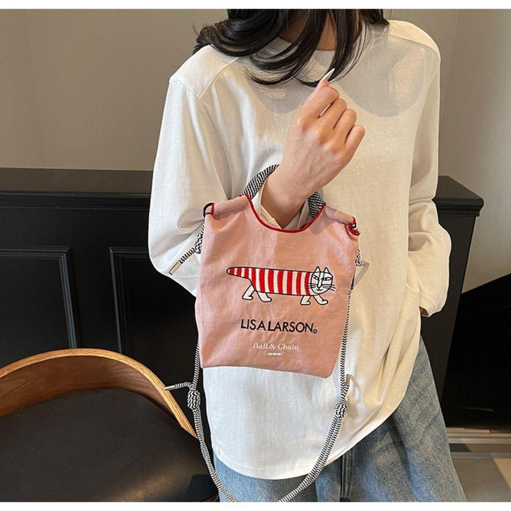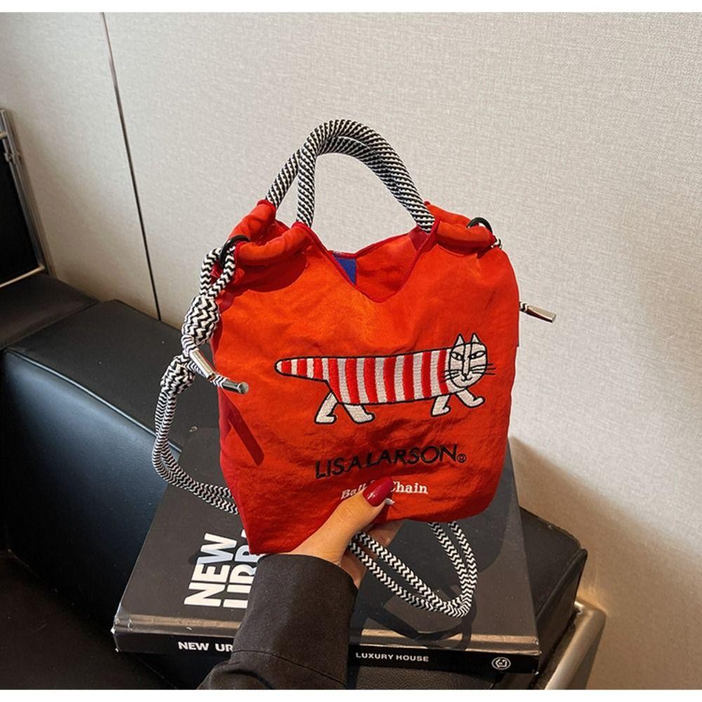 KODICE ไนลอน Drawstring Bag, Tote Bag สไตล์เกาหลี Ball&Chain เย็บปักถักร้อยกระเป๋าถือ,น่ารักพิมพ์การ์ตูนขนาดใหญ่ความจุไนลอน Crossbody Bag Travel