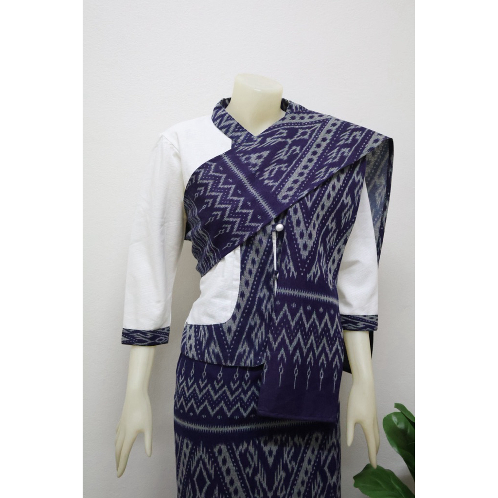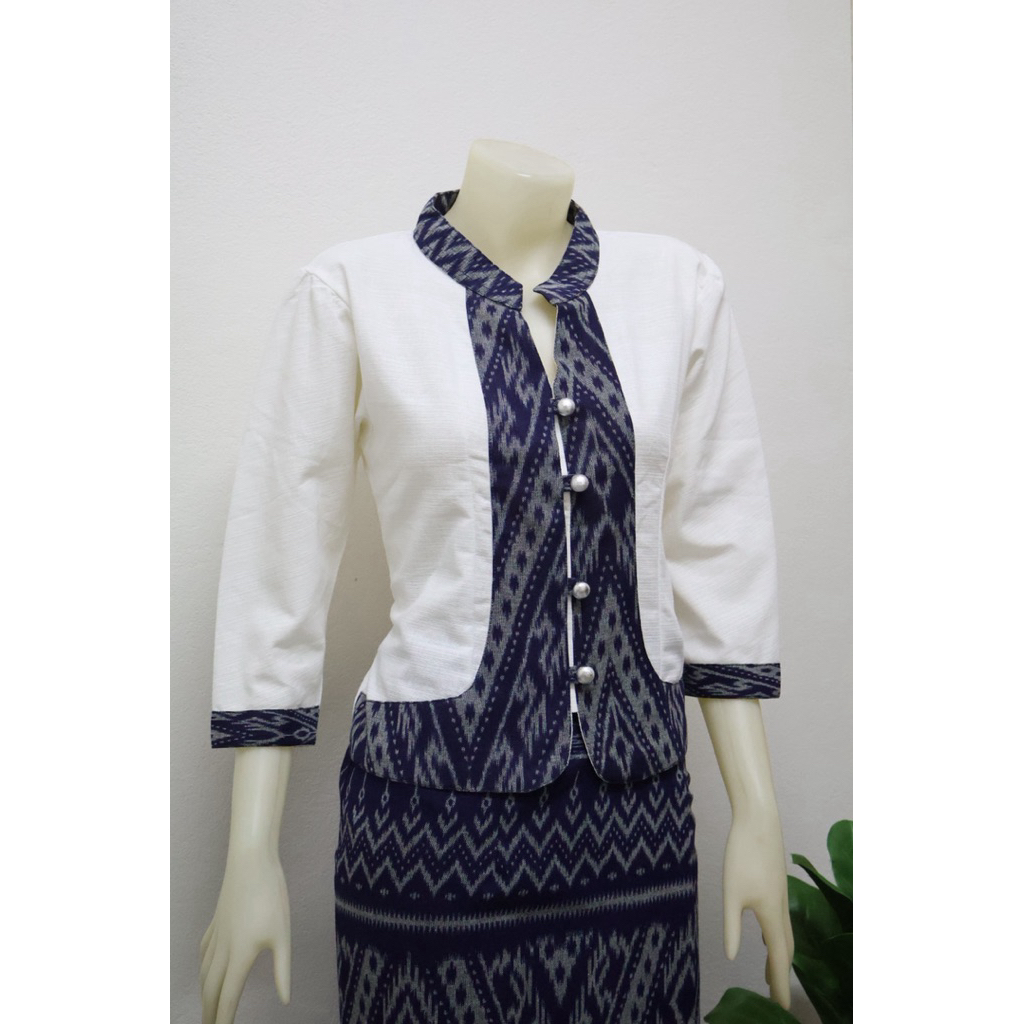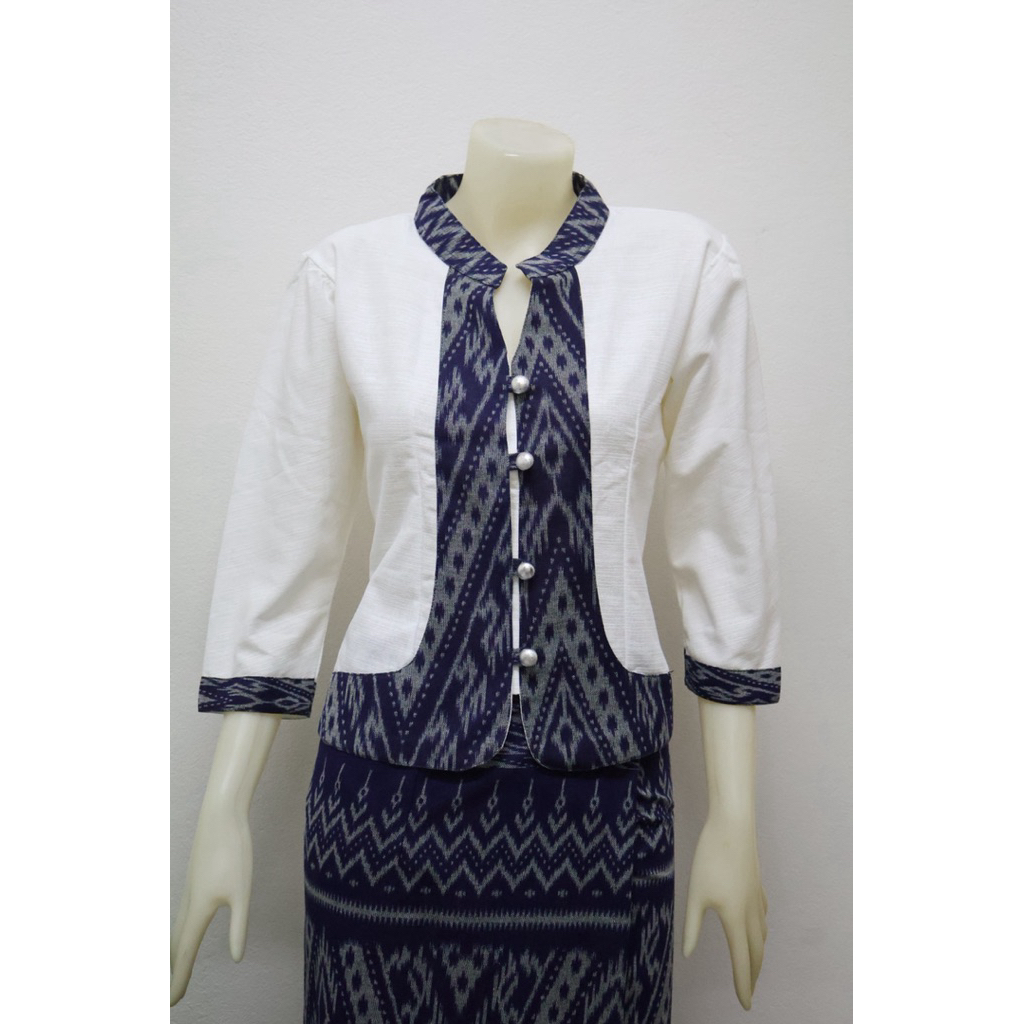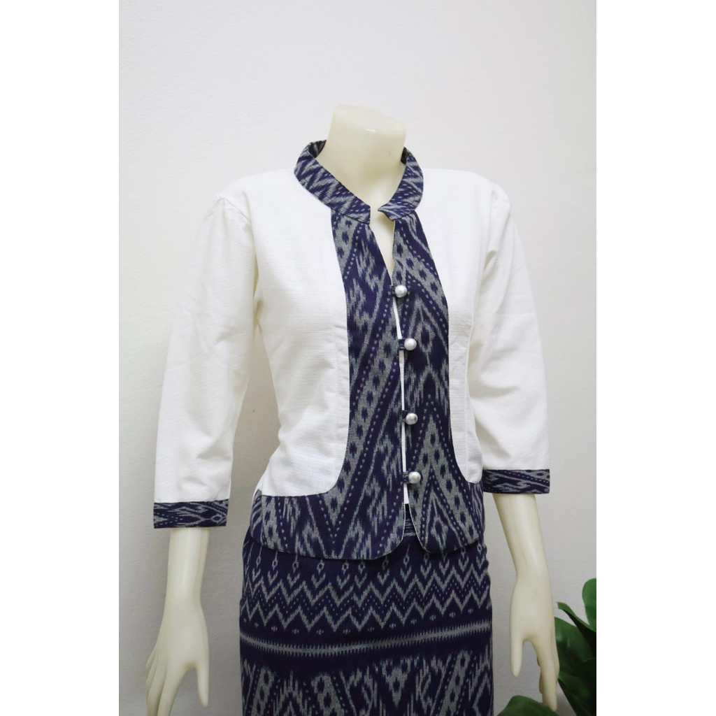 เสื้อแขนสามส่วนแต่งเเถบลายขอ เสื้ออีสานประยุกต์