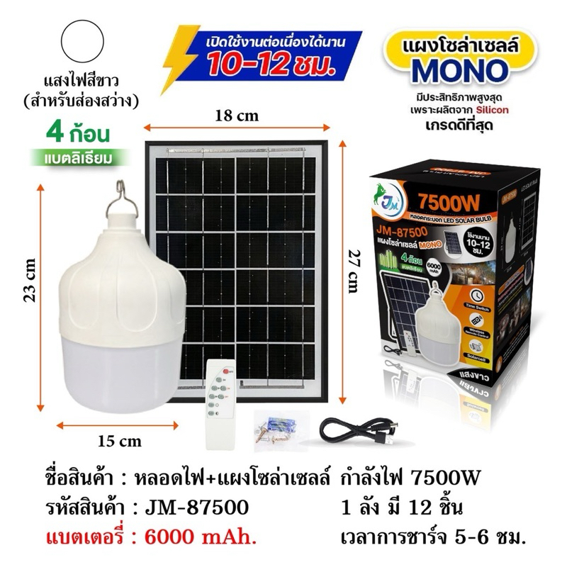 หยิบใส่ตะกร้าหลอดไฟตุ้มโซลาเซลล์ขนาดใหญ่ 7500 วัตต์ ยี่ห้อ JM รุ่น JM-87500 แสงขาว ใช้งานได้ยาวนาน 10-12 ชั่วโมง/MR 6720 (5000w)