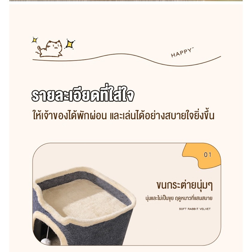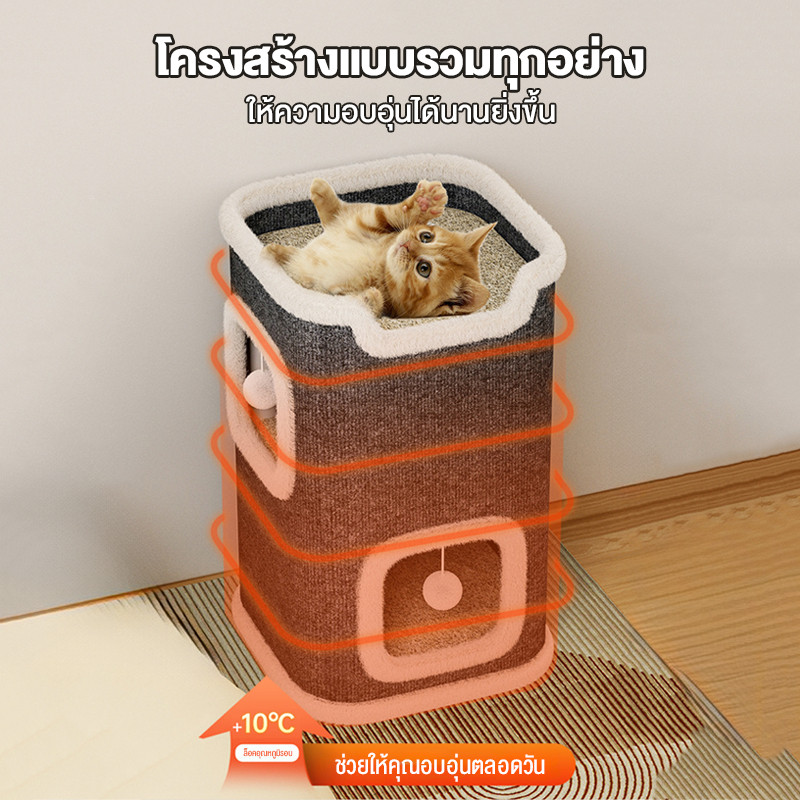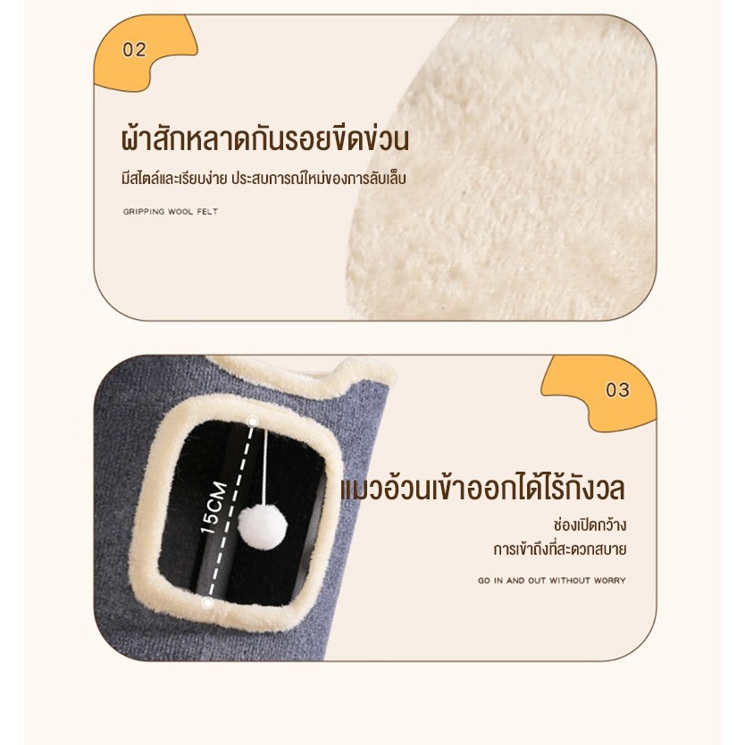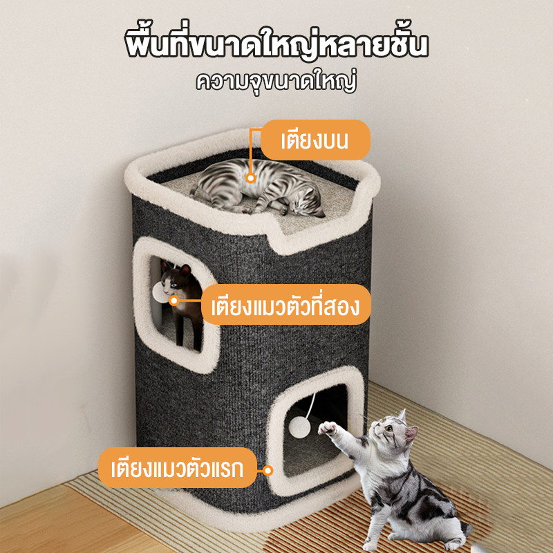 ขนาด ใหญ่ บ้านแมว ที่ลับเล็บแมว+เตียงนอน วัสดุทนทานแข็งแรง สักหลาด คอนโดแมว บ้านลับเล็บแมว ของเล่นแมวปีน ของเล่นแมว