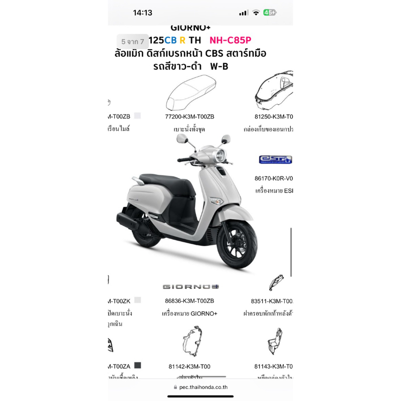 หยิบใส่ตะกร้าบังโคลนหน้าGiornoสีขาวแท้ศูนย์ 61200-K3M-T00ZA
