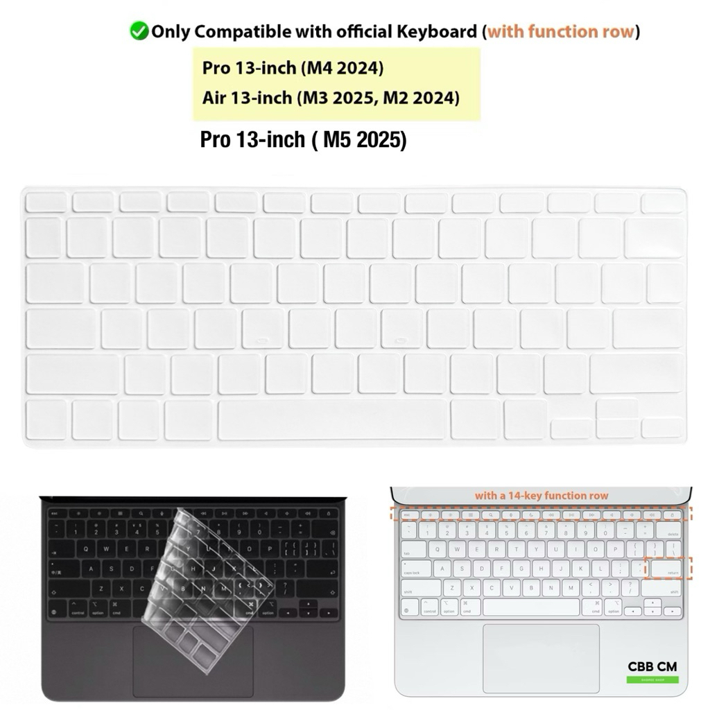 ซิลิโคน Magic คีย์บอร์ดแบบใส TPU สำหรับ iPad Pro 13” M4 M5 รุ่นปี 2024-2025 ป้องกันฝุ่น กันคราบเลอะ และน้ำหกใส่ Keyboard Layout keyboard ที่ร้านจะมีเป็นแบบ US Version ปุ่ม Enter แบบตรงเท่านั้นนะคะ กรุณาตรวจสอบรุ่นก่อนสั่งซื้อค่ะ