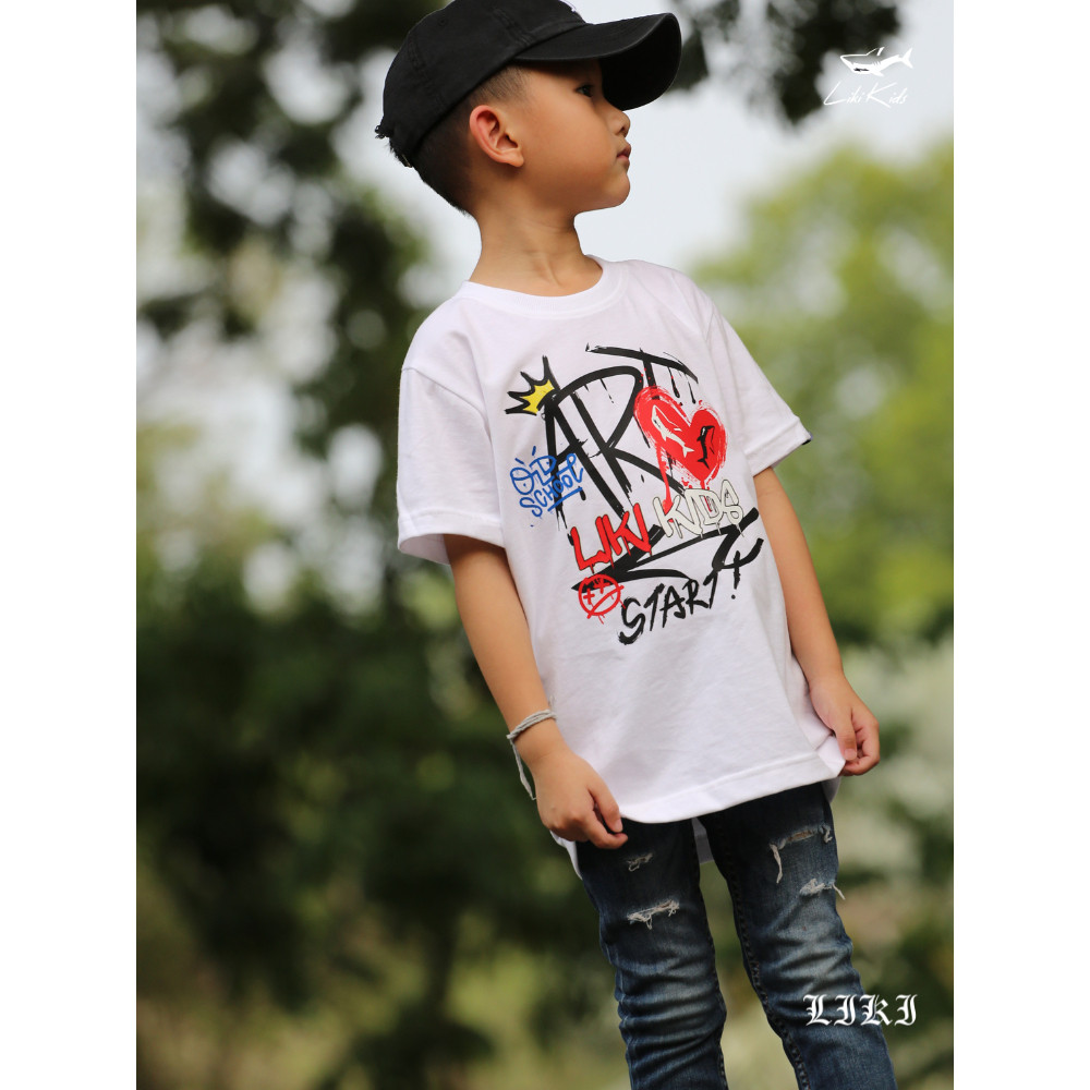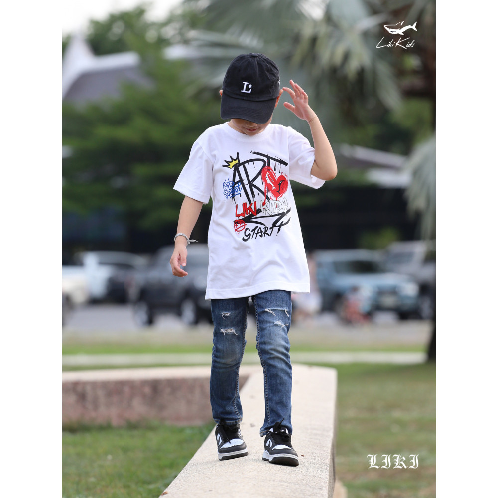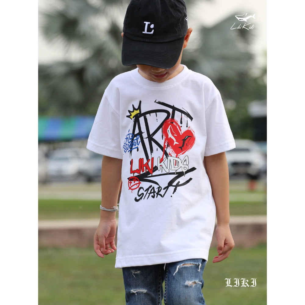เสื้อยืดสกรีน “LIKI KIDS X ART ” ลวดลายแนวกราฟฟิตี้สุดเท่ห์