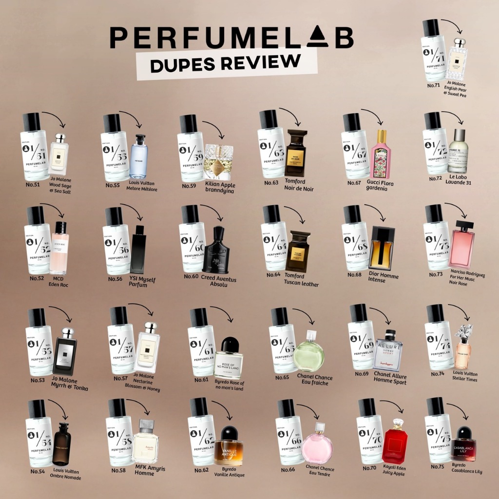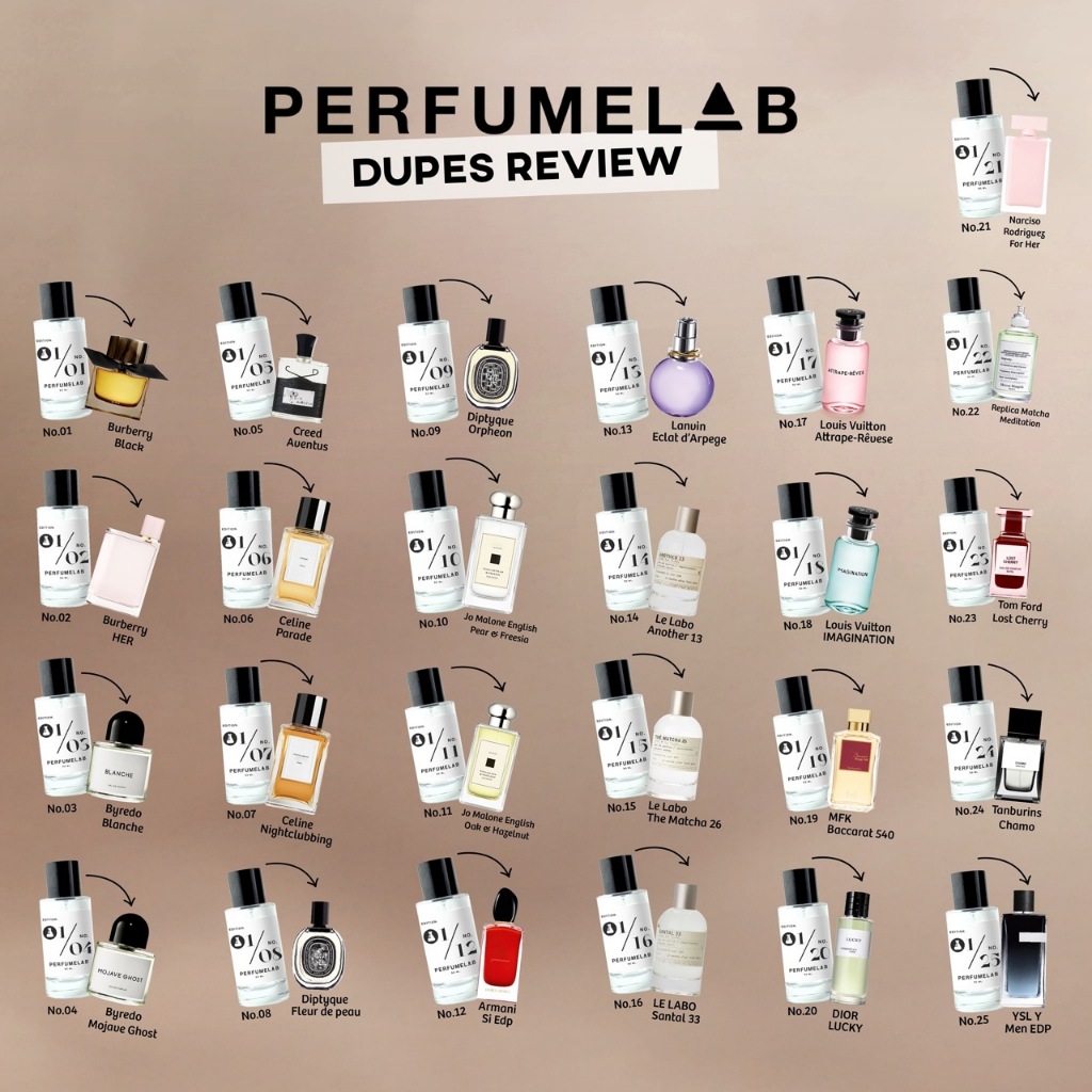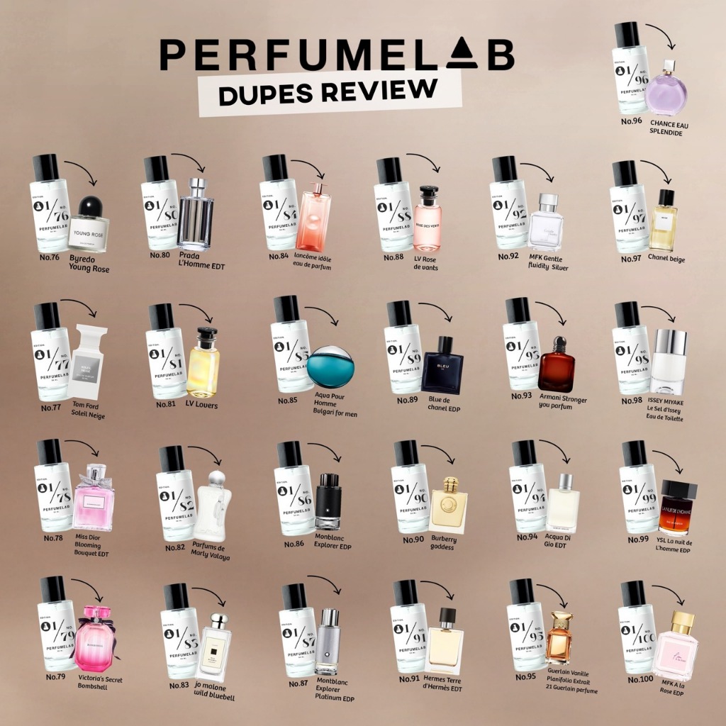 PERFUMELAB น้ำหอม DUPE กลิ่นหรูเกินราคา ติดทน ไม่บอกใครไม่มีวันรู้ว่าราคาหลักร้อย หัวน้ำหอมแท้ 100% แต่ราคาไม่ถึงร้อย กลิ่นเป๊ะจนคนทักว่าใช้อะไร ? หอมหรู ติดทน จนคิดว่าเคาน์เ