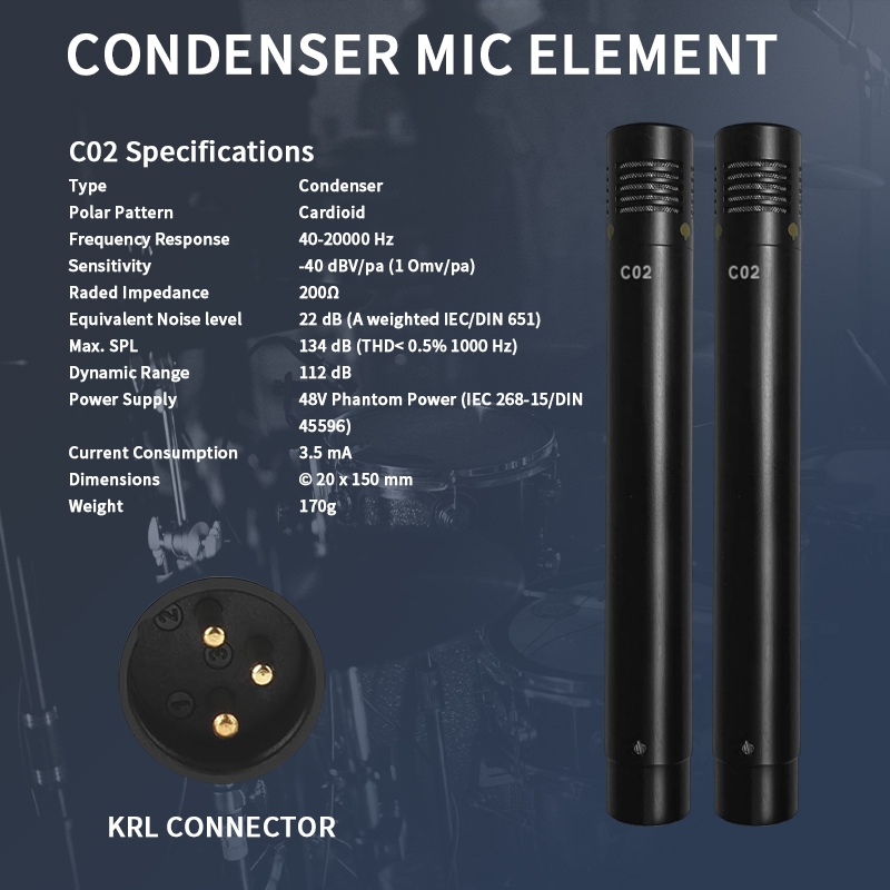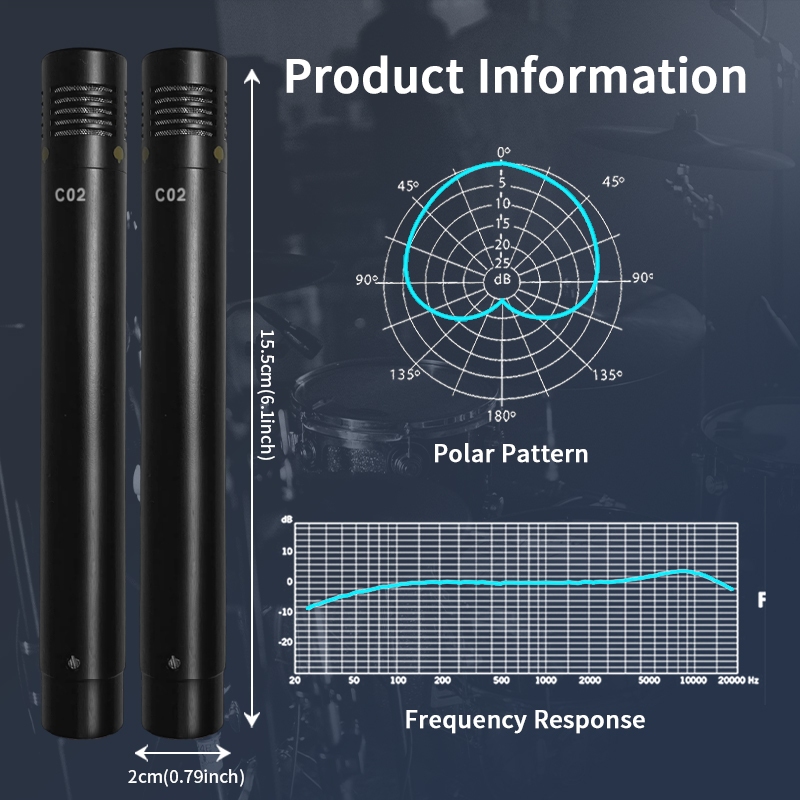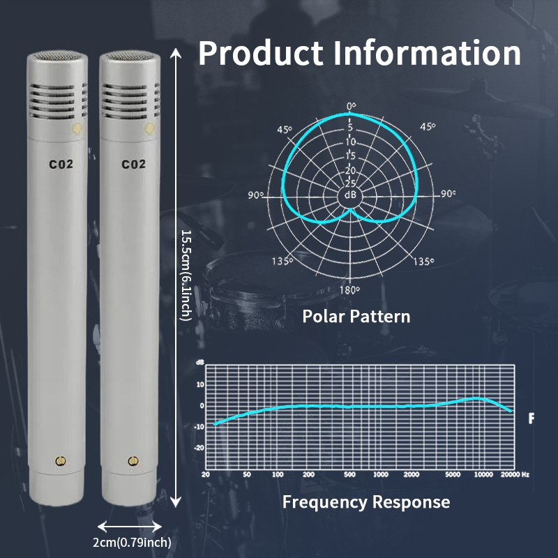 ต้นฉบับ ค02 ดินสอตัวเก็บประจุเครื่องดนตรีมืออาชีพรถกระบะไมโครโฟนเครื่องดนตรี48โวลต์คอนเดนเซอร์ไมโครโฟน (มีเดี่ยวและคู่) สําหรับสตูดิโอ,บันทึก