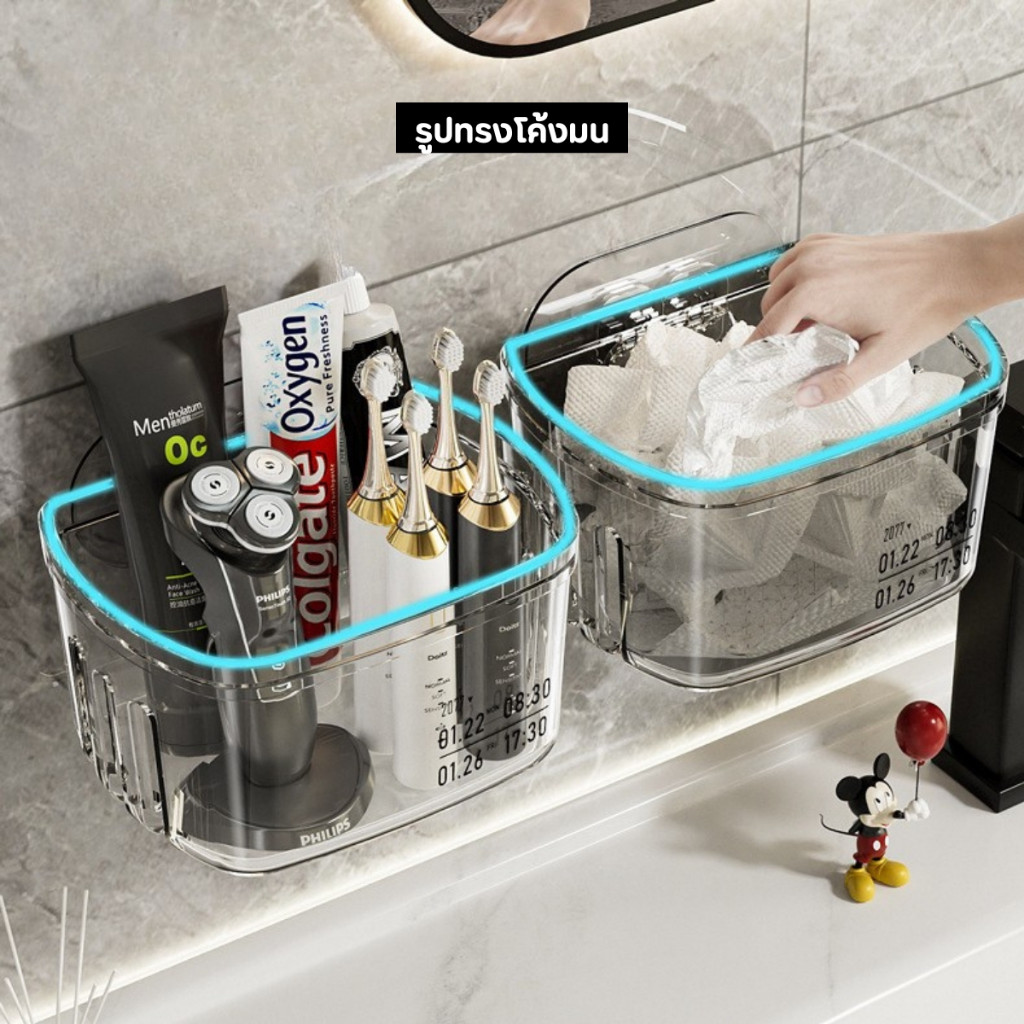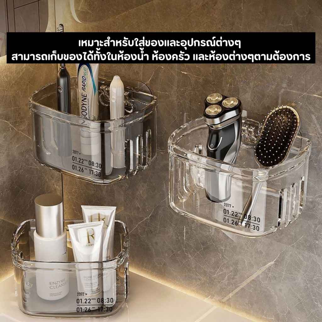 NiftyHome ชั้นวางของในห้องน้ำ กล่องเก็บของในห้องน้ำ กล่องเก็บของติดผนัง เอนกประสงค์ ไม่จำเป็นต้องเจาะรู