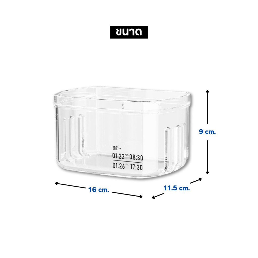 จุดเด่น : ผลิตจากพลาสติก PET แข็งแรง ทนทาน ไม่แตกง่าย ใช้งานได้ยาวนาน การออกแบบรูปทรงโค้งมน สีใสสามารถเห็นของภายในได้อย่างชัดเจน ใช้สำหรับติดผนังโดยมีแผ่นกาวที่มีตัวล็อคทำให้ติดแน่นไม่ร่วงห