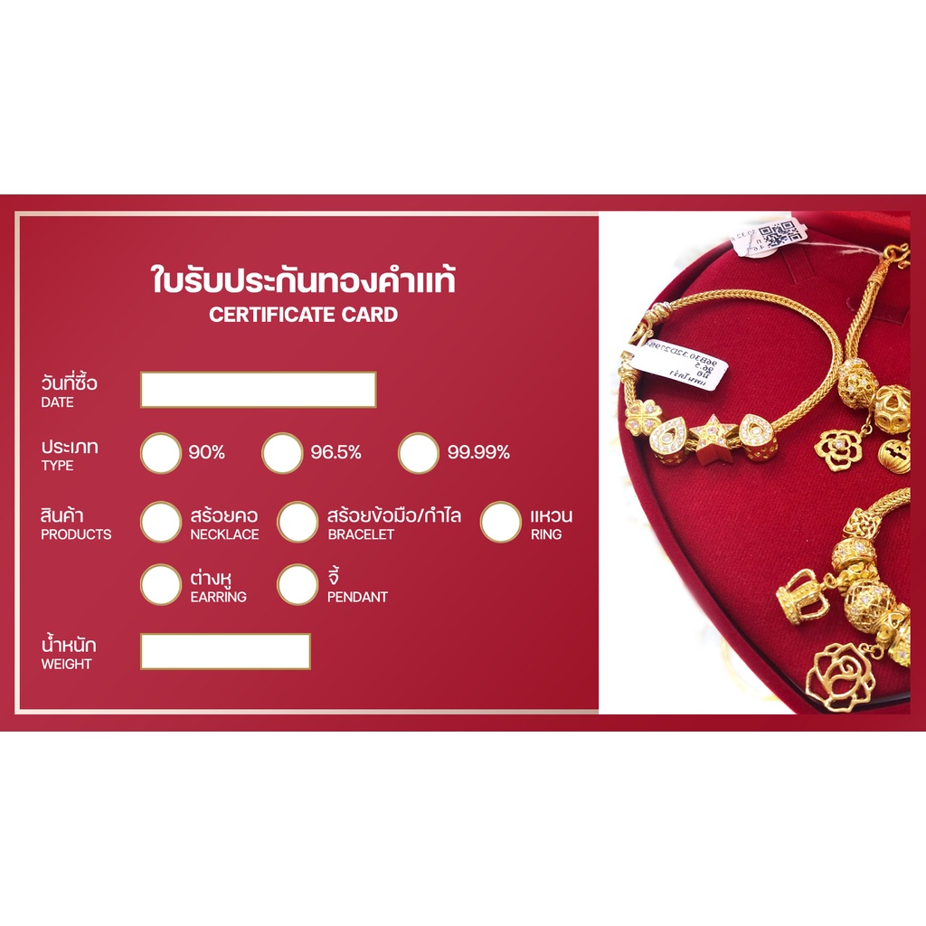 ⋆ เปอร์เซ็นต์ทอง : ทองแท้ 96.5% ได้รับการการันตีมาตราฐานจากสมาคมค้าทองคำ